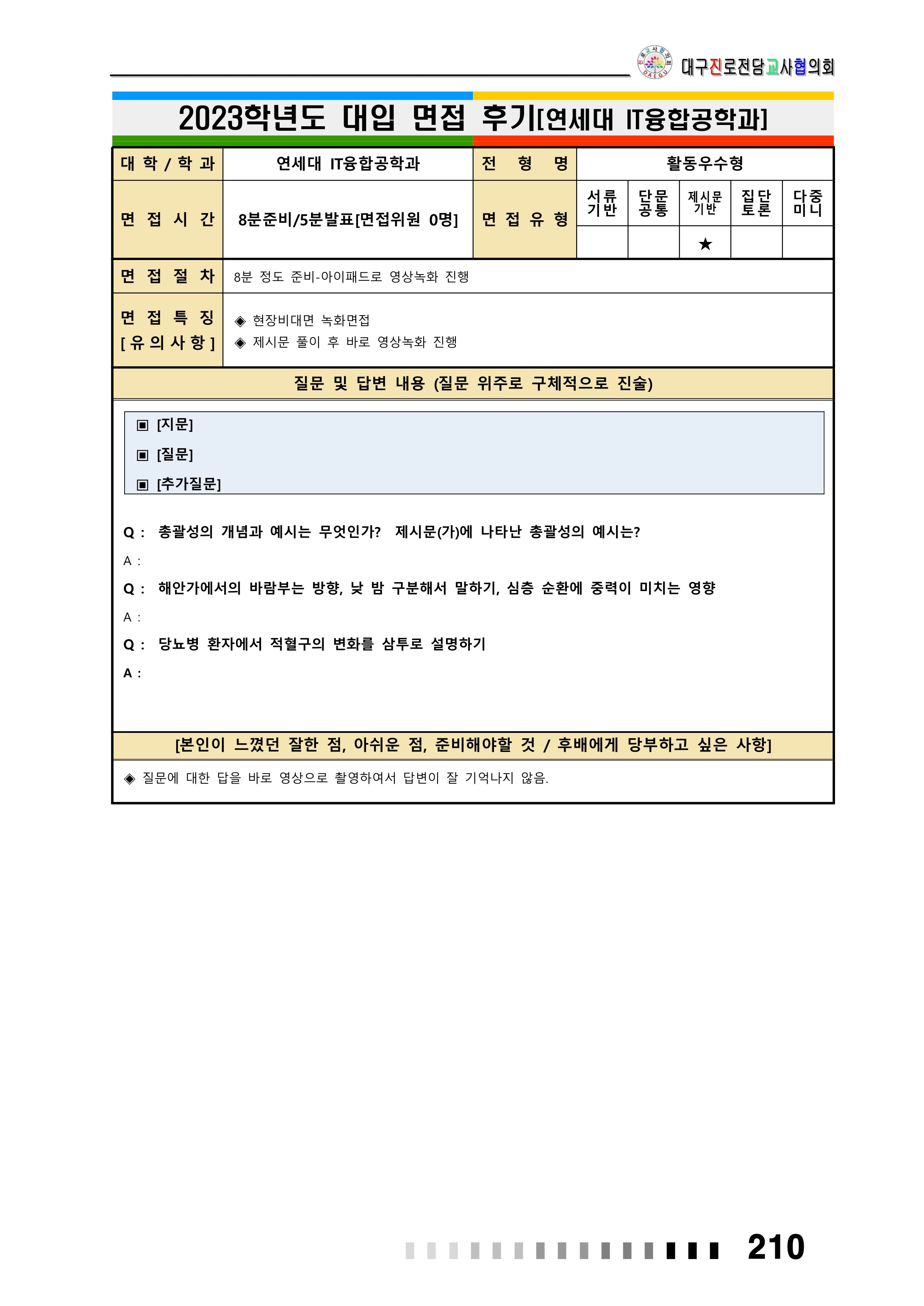 2023학년도 연세대학교 면접 후기1 - IT융합공학과 2023학년도 연세대학교 면접 후기2 - 교육학부