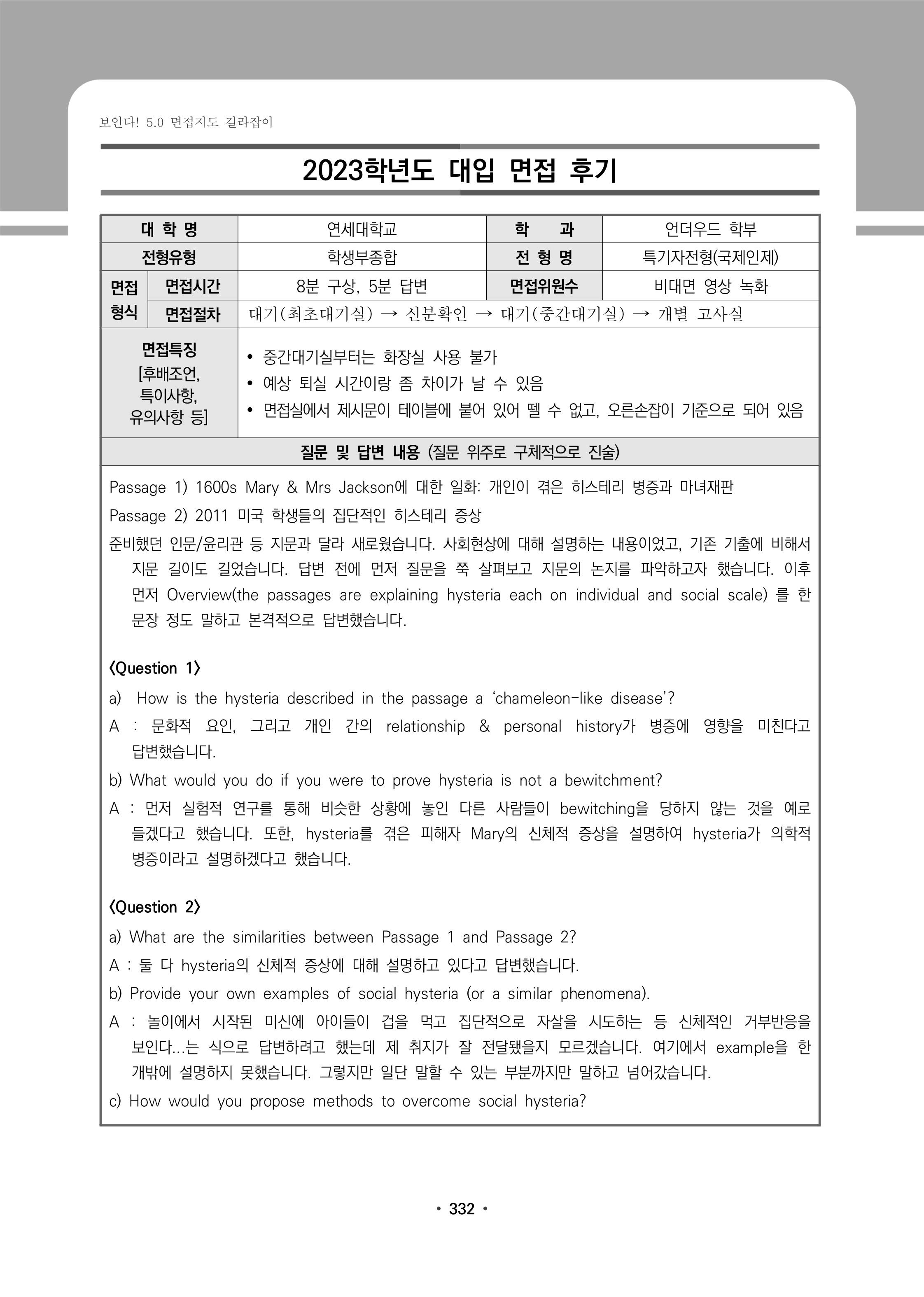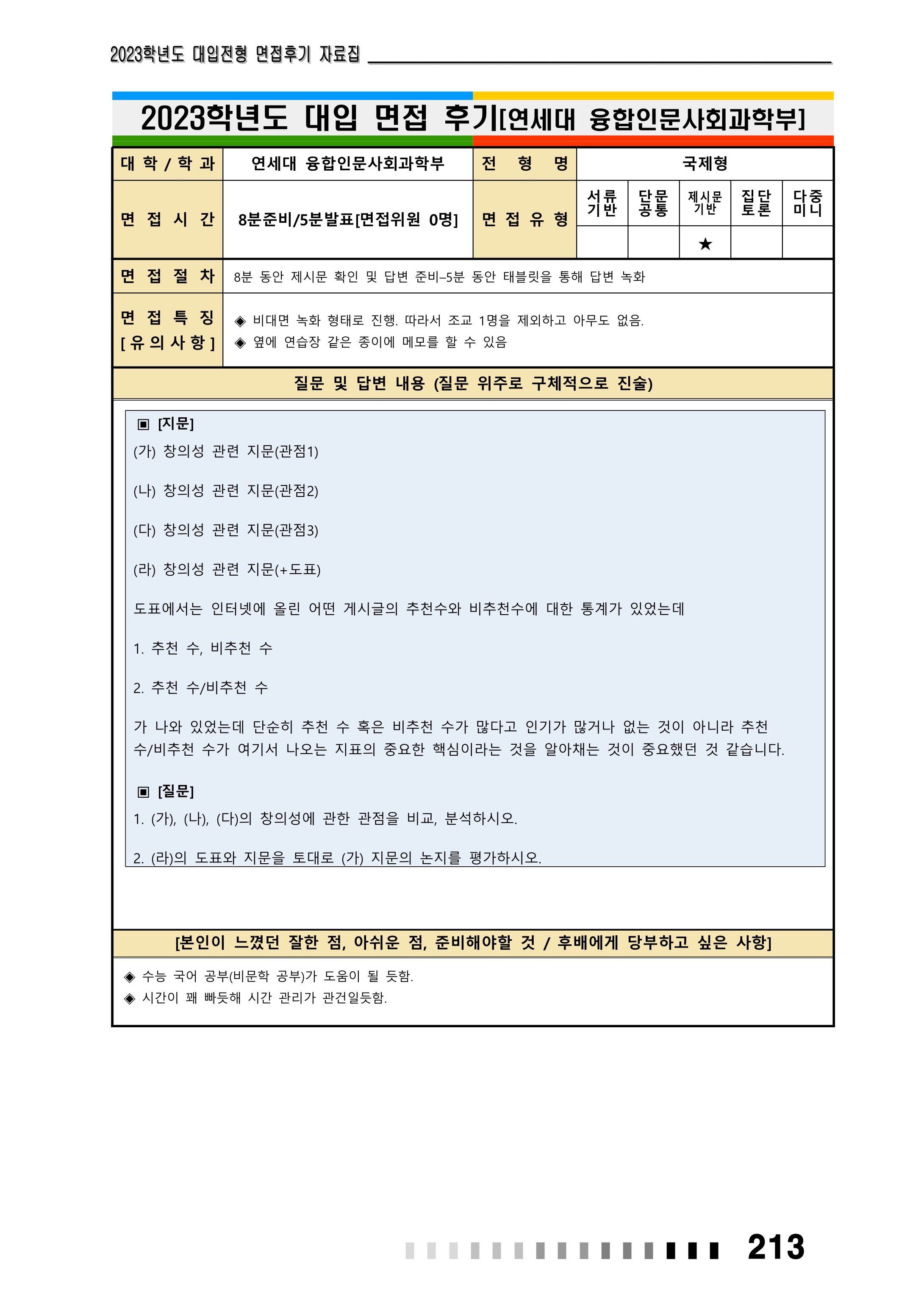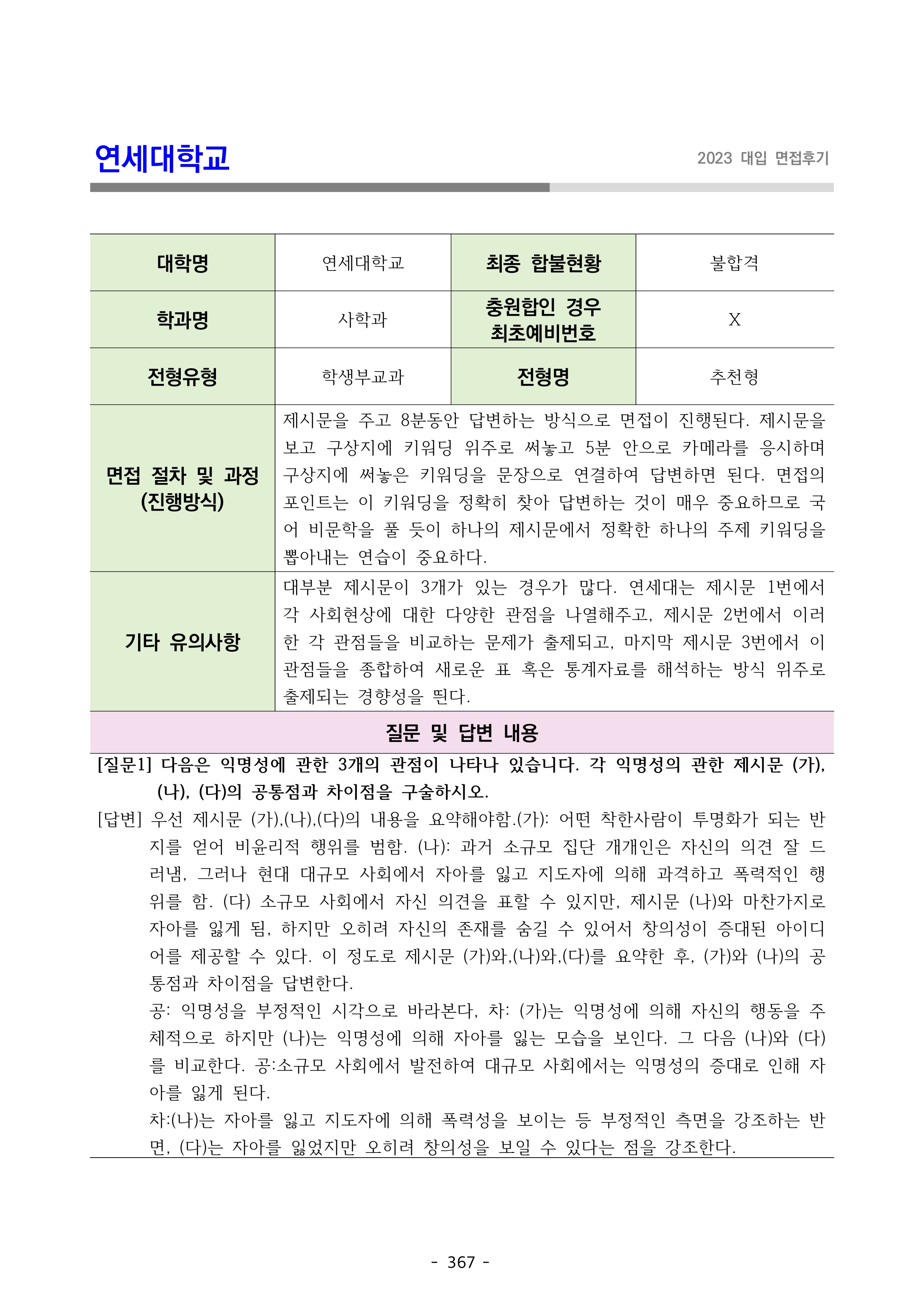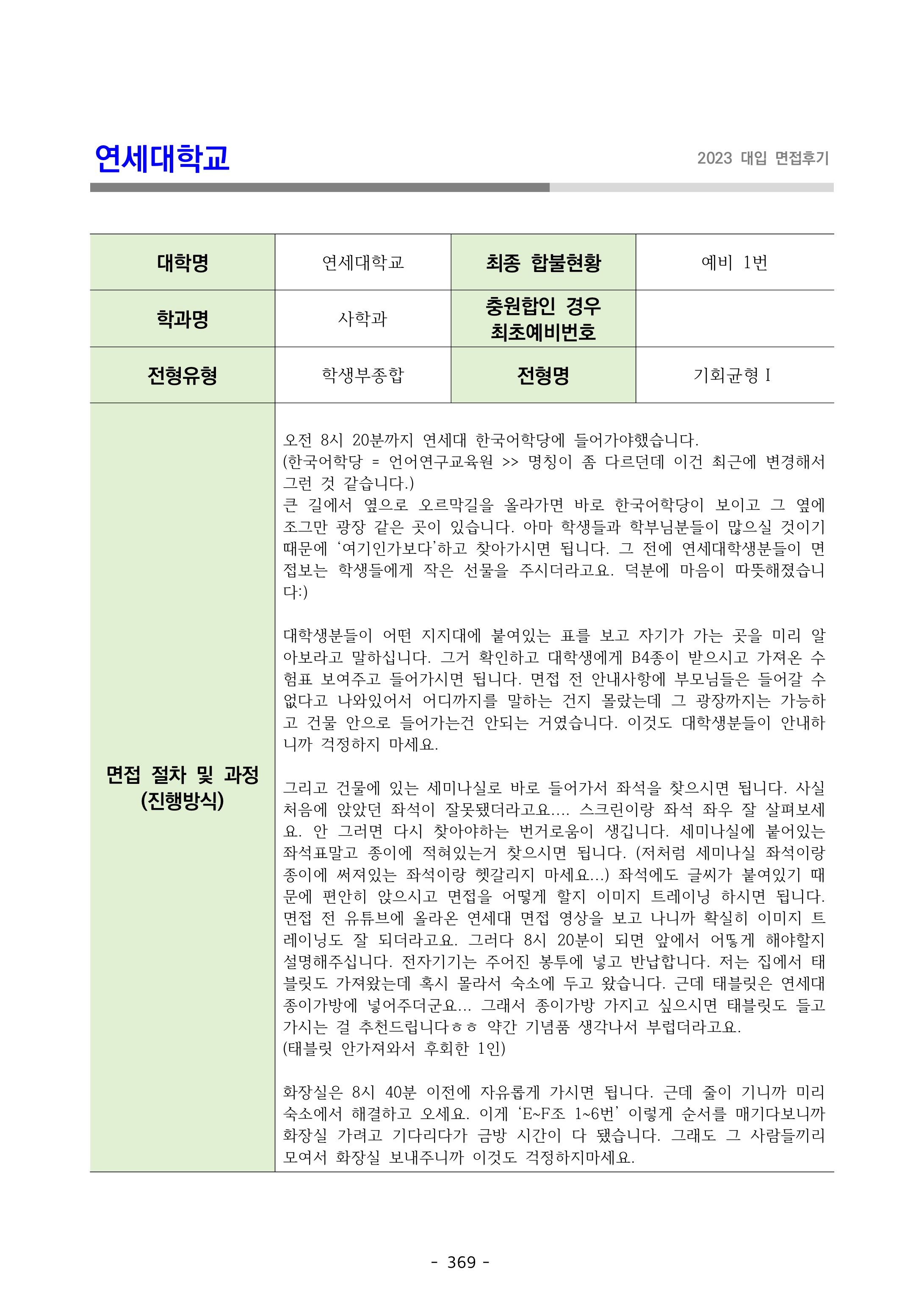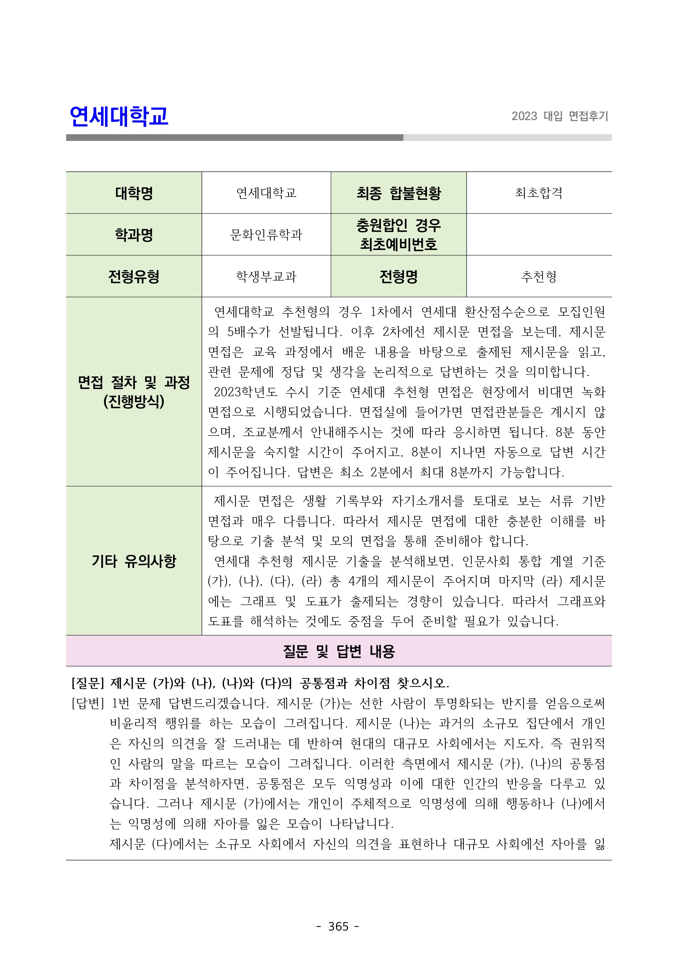 2023학년도 연세대학교 면접 후기11 - 융합인문사회과학부