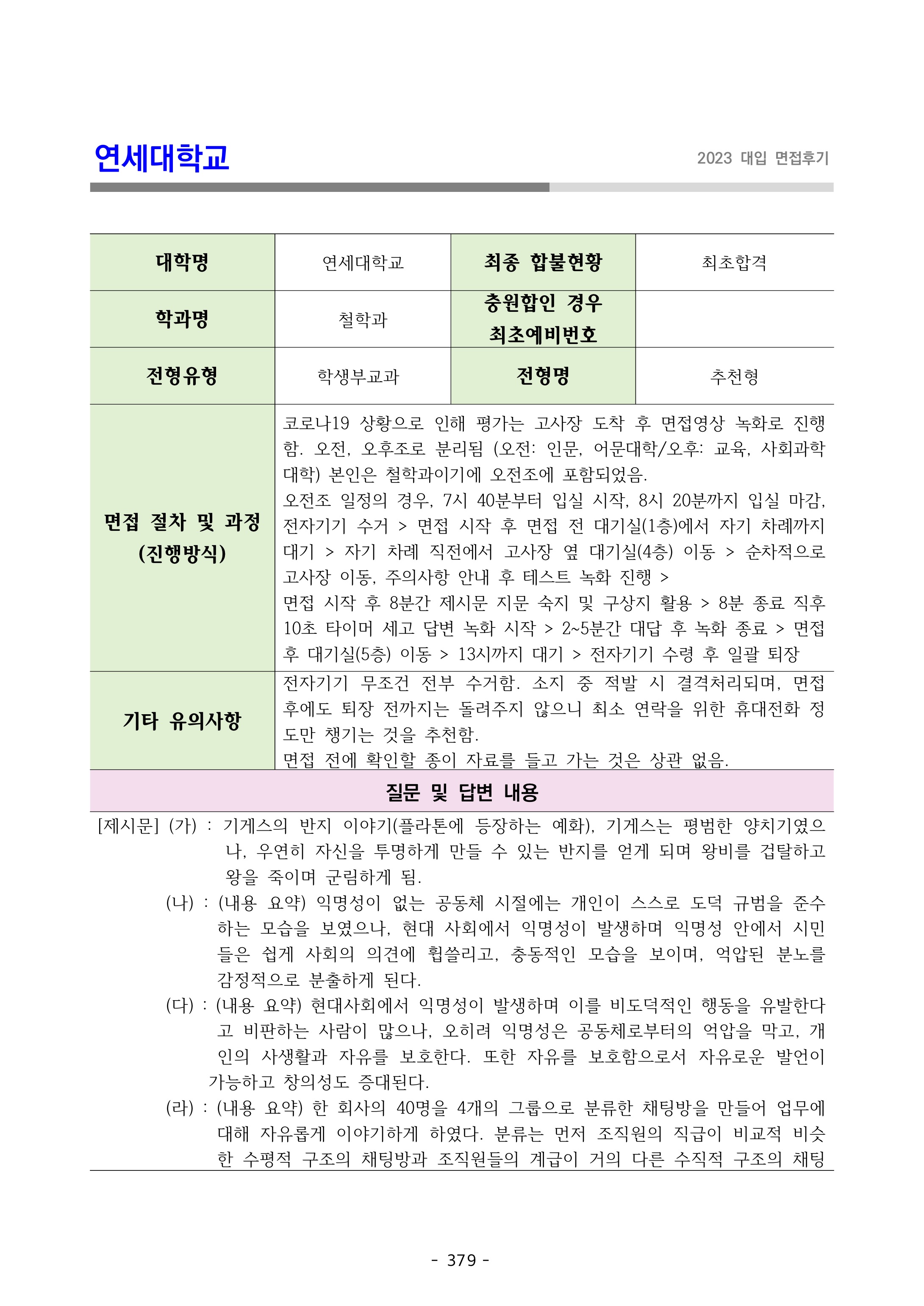 2023학년도 연세대학교 면접 후기16 - 철학과