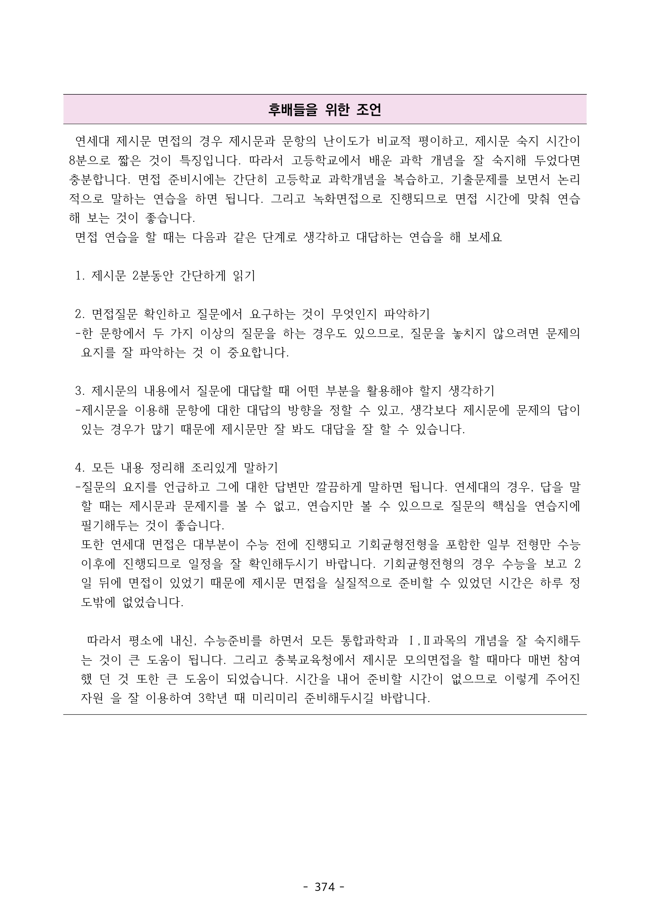 2023학년도 연세대학교 면접 후기6 - 생명공학과