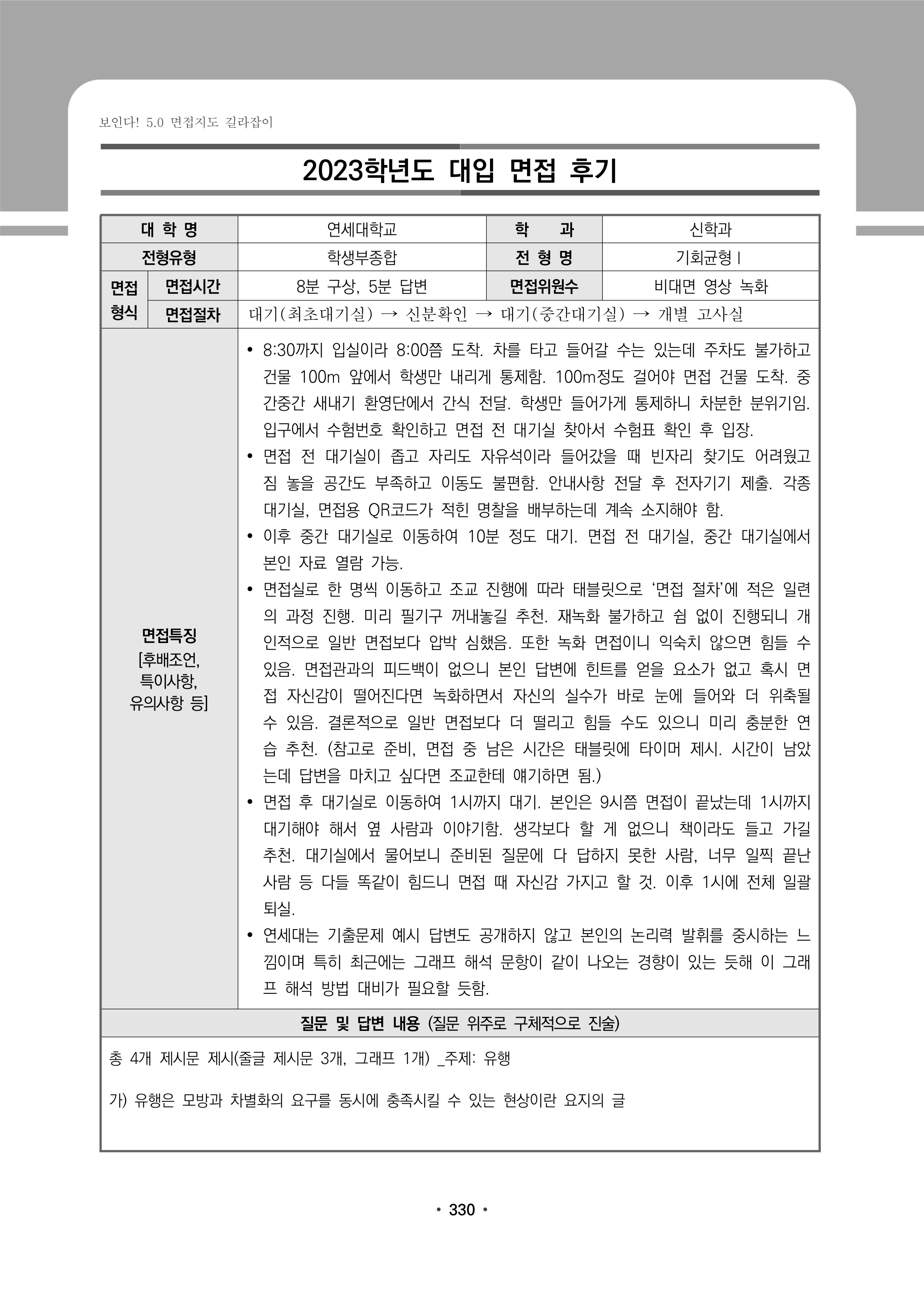 2023학년도 연세대학교 면접 후기7 - 신학과