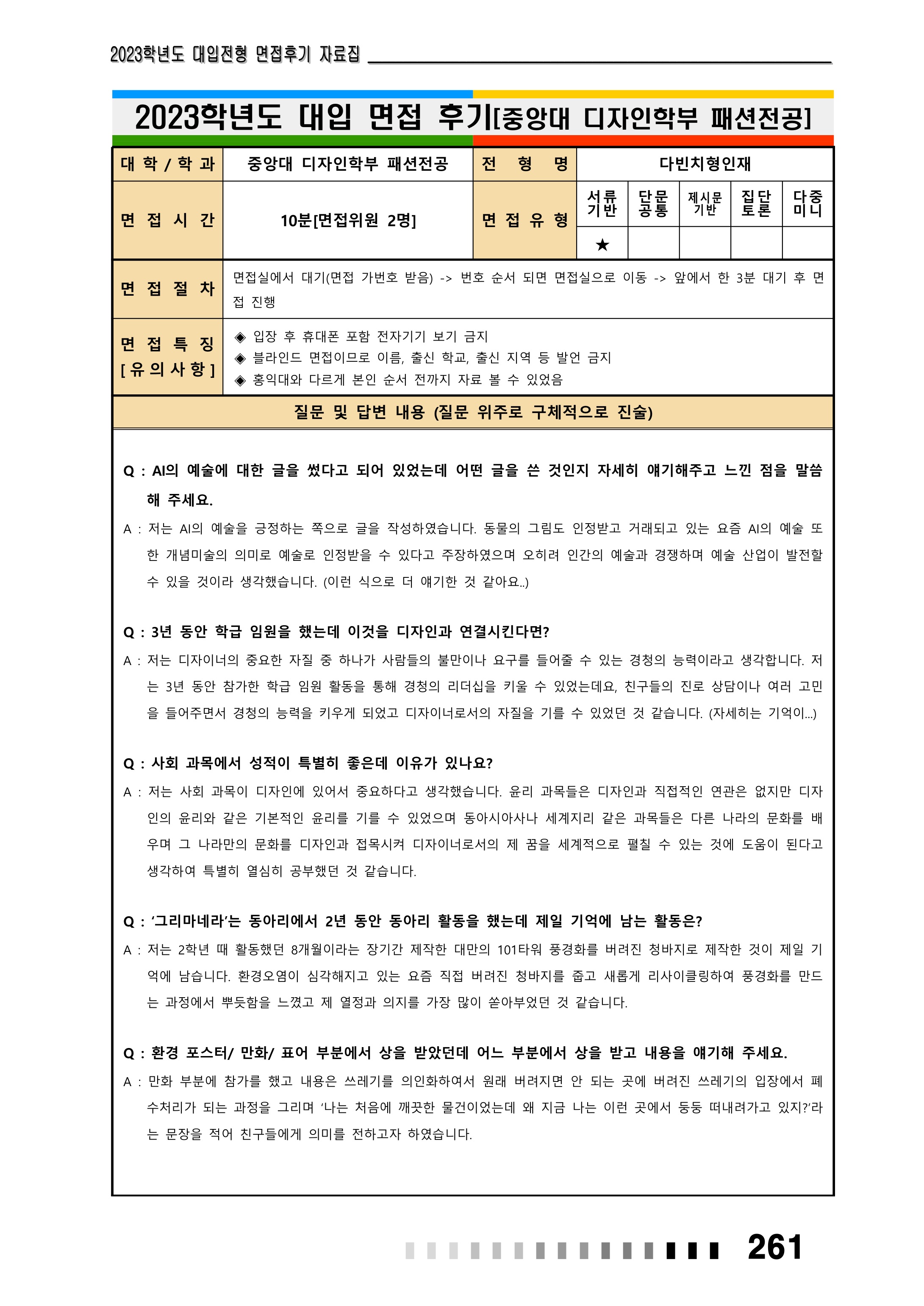 2023학년도 중앙대학교 면접 후기8 - 디자인학부