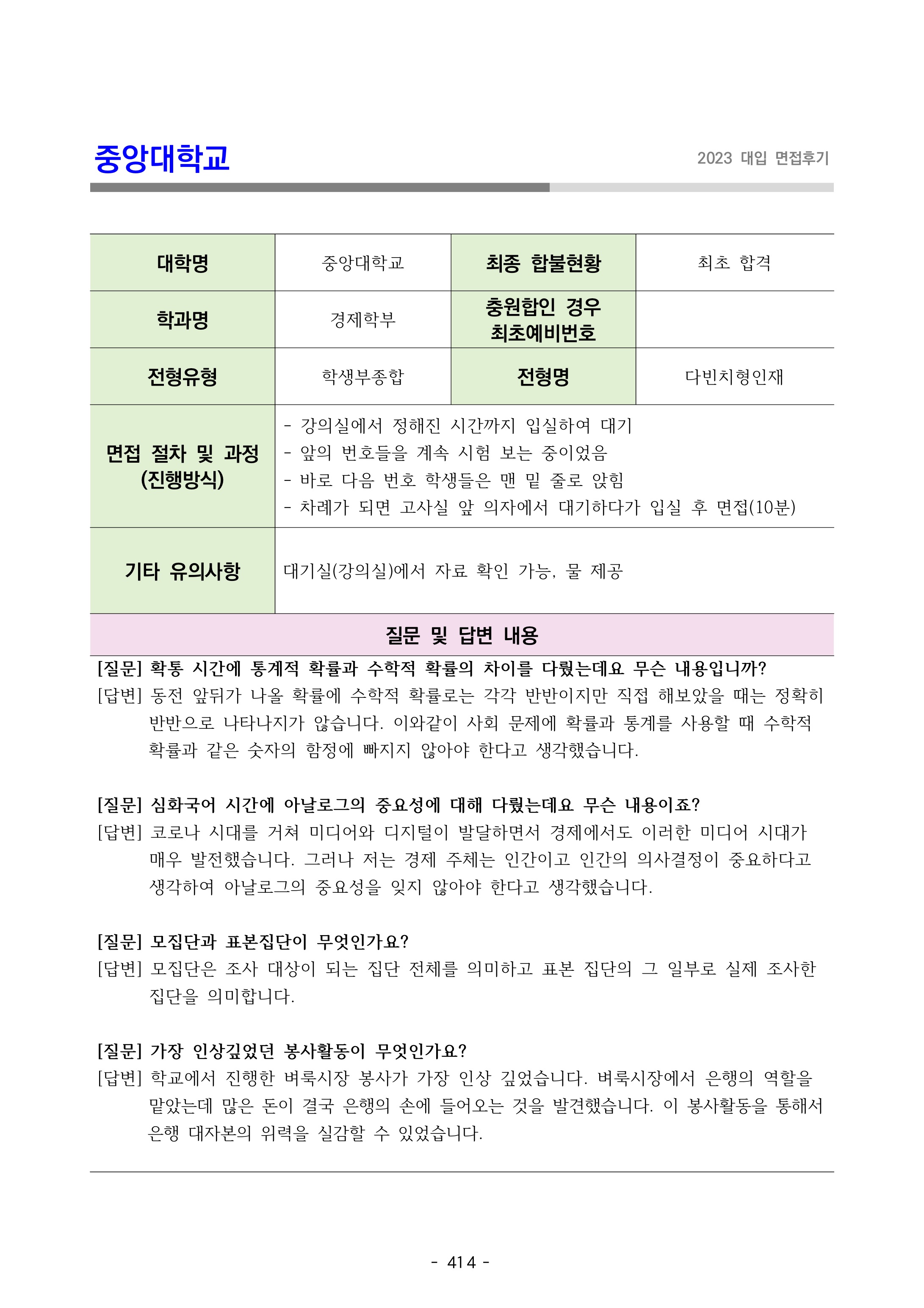2023학년도 중앙대학교 면접 후기6 - 경제학부