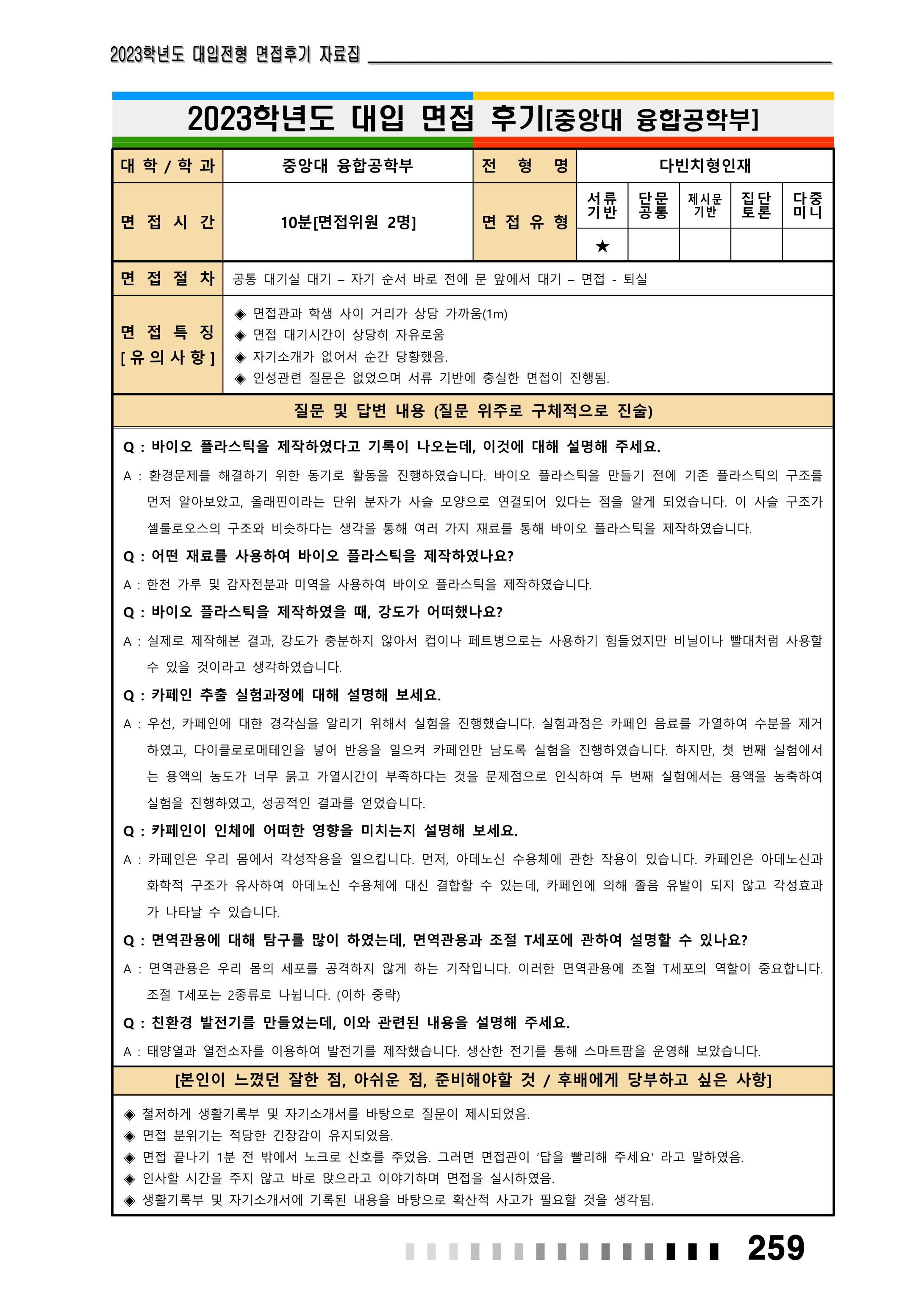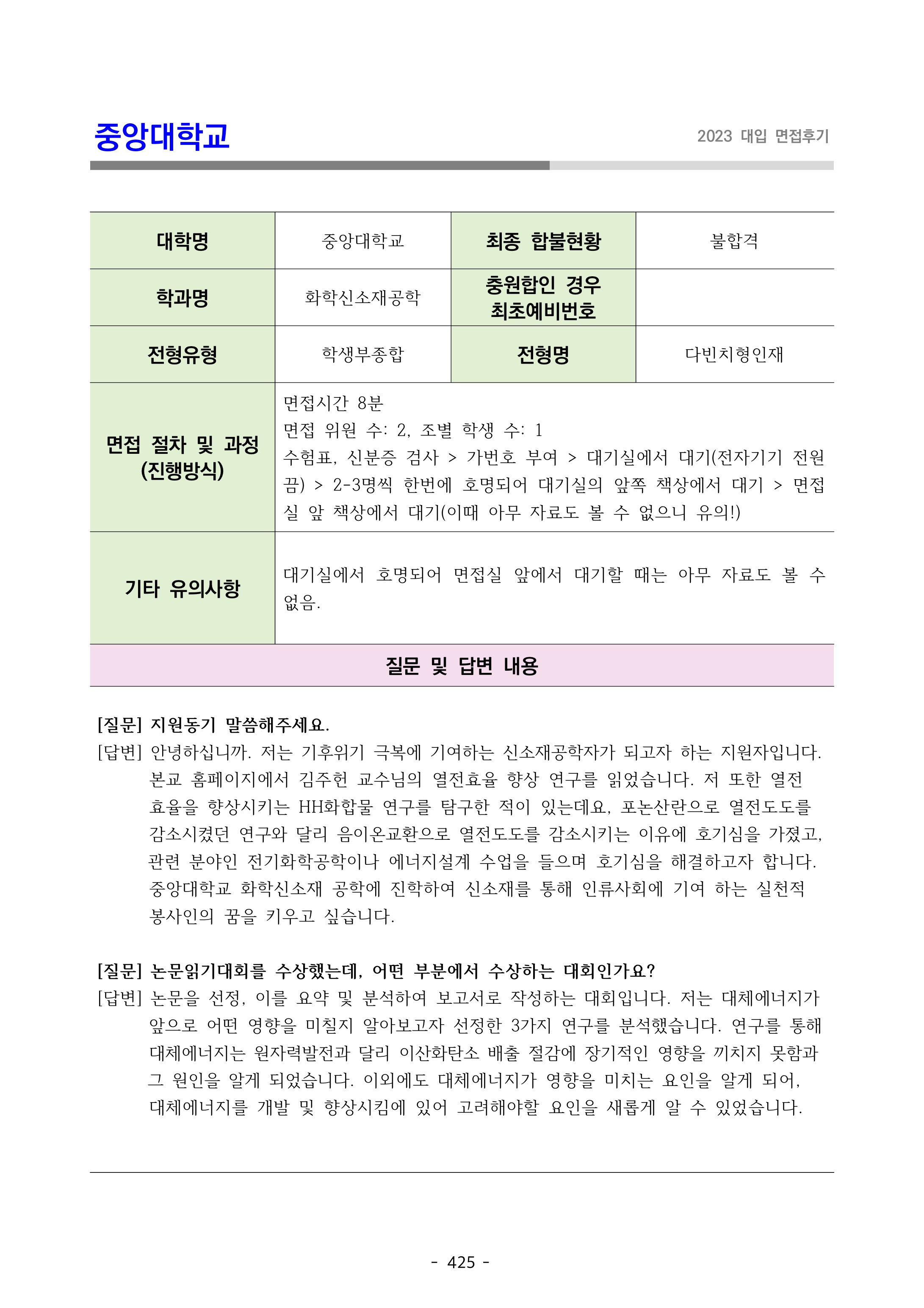 2023학년도 중앙대학교 면접 후기18 - 화학신소재공학부