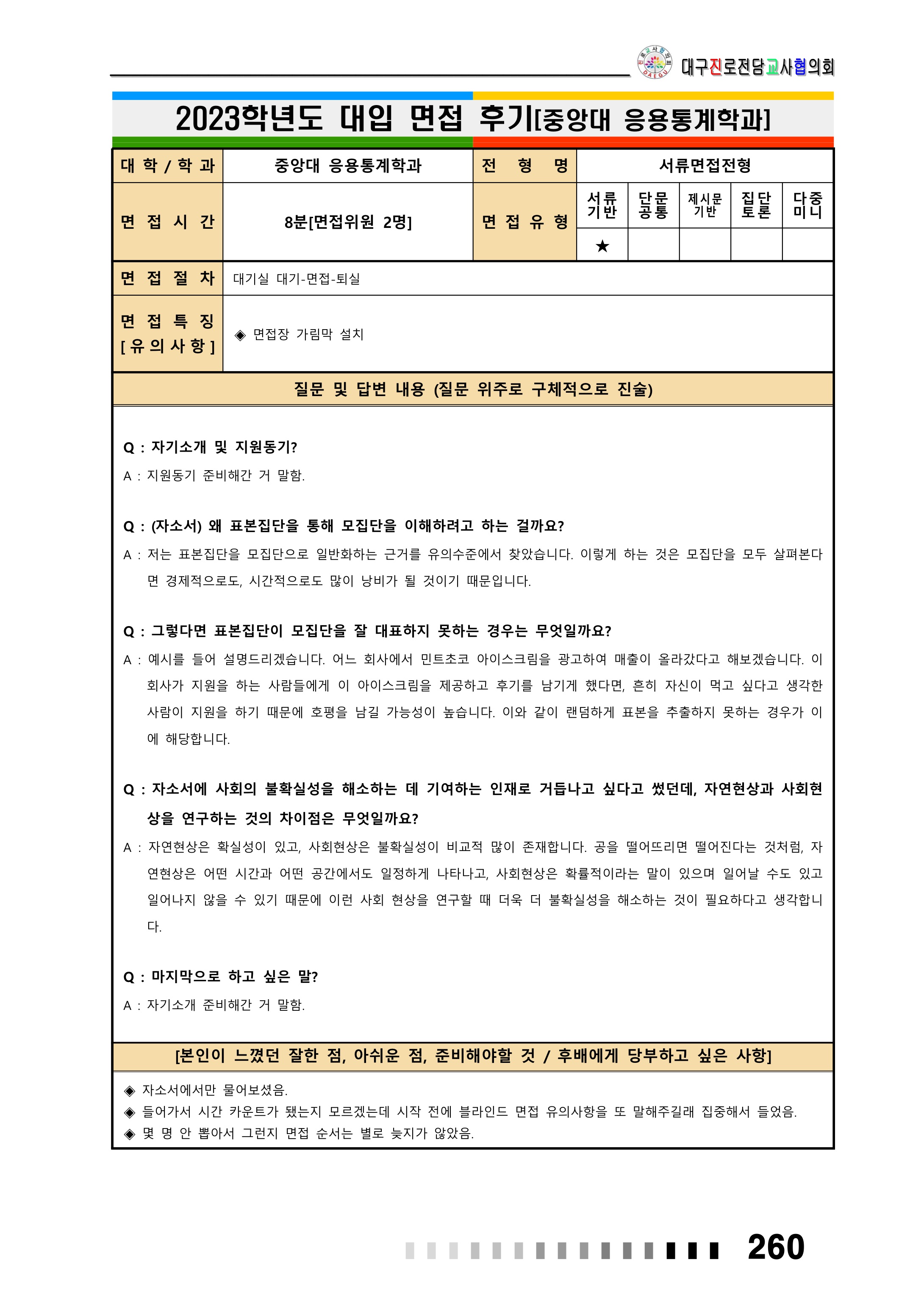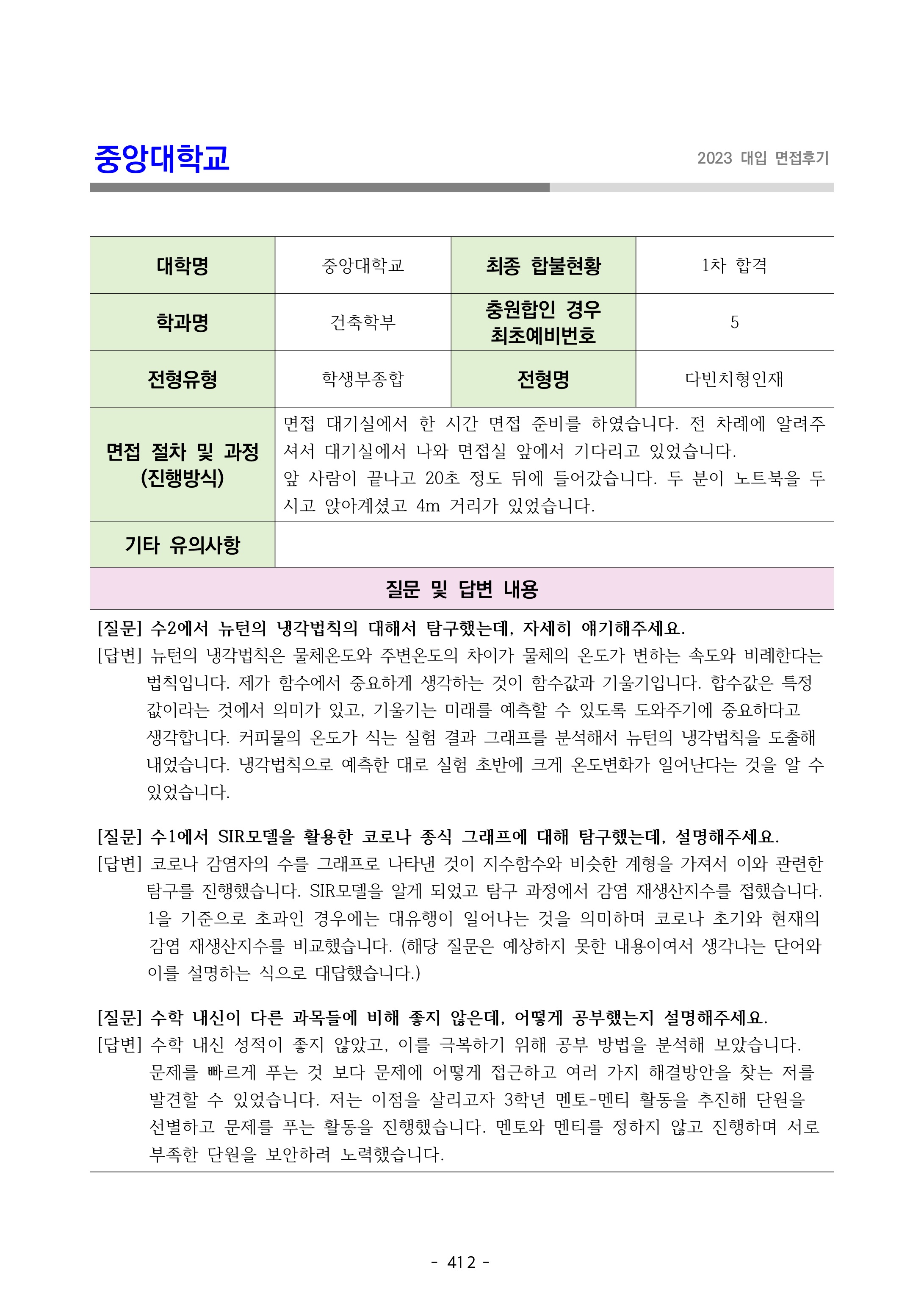 2023학년도 중앙대학교 면접 후기15 - 융합공학부 2023학년도 중앙대학교 면접 후기16 - 응용통계학과
