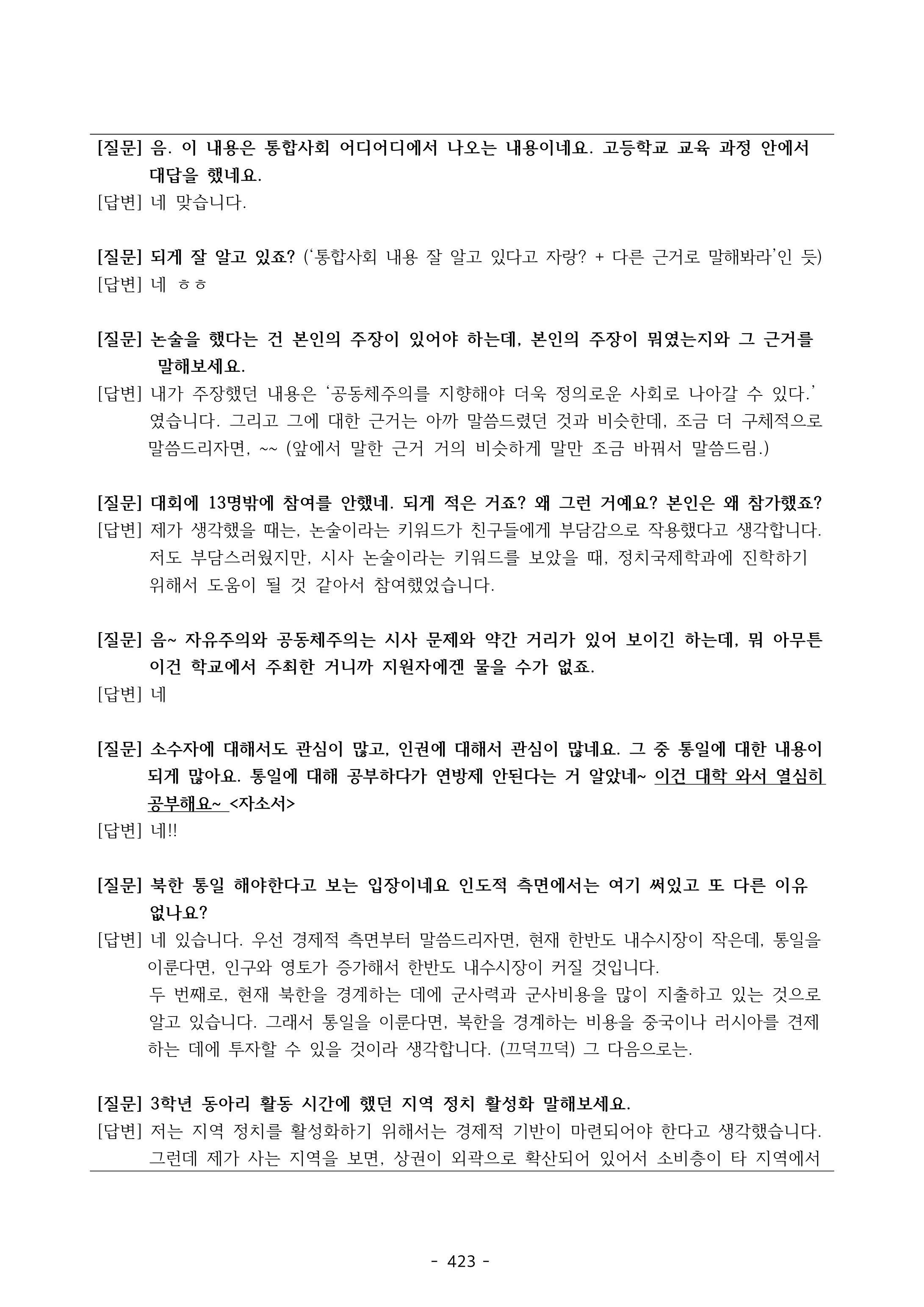 2023학년도 충남대학교 면접 질문 (0) 2023.11.21 2023학년도 동아대학교 면접 질문 (1) 2023.11.21 2023학년도 고려대학교 면접 질문 (0) 2023.11.19 2023학년도 고려대학교 면접구술시험 문제 및 해설 (1) 2023.11.19 2023학년도 연세대학교 면접 질문 (0) 2023.11.18