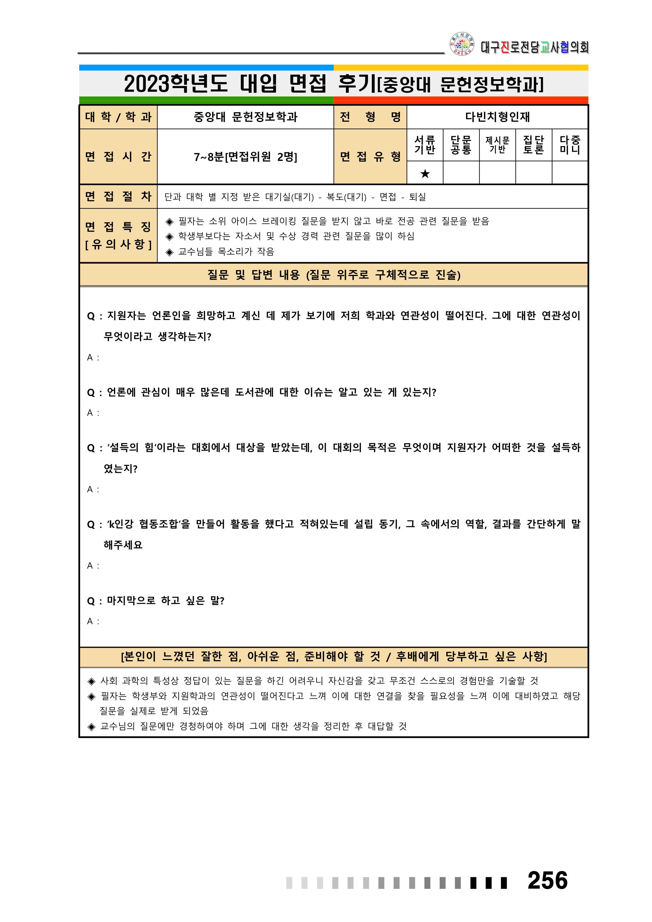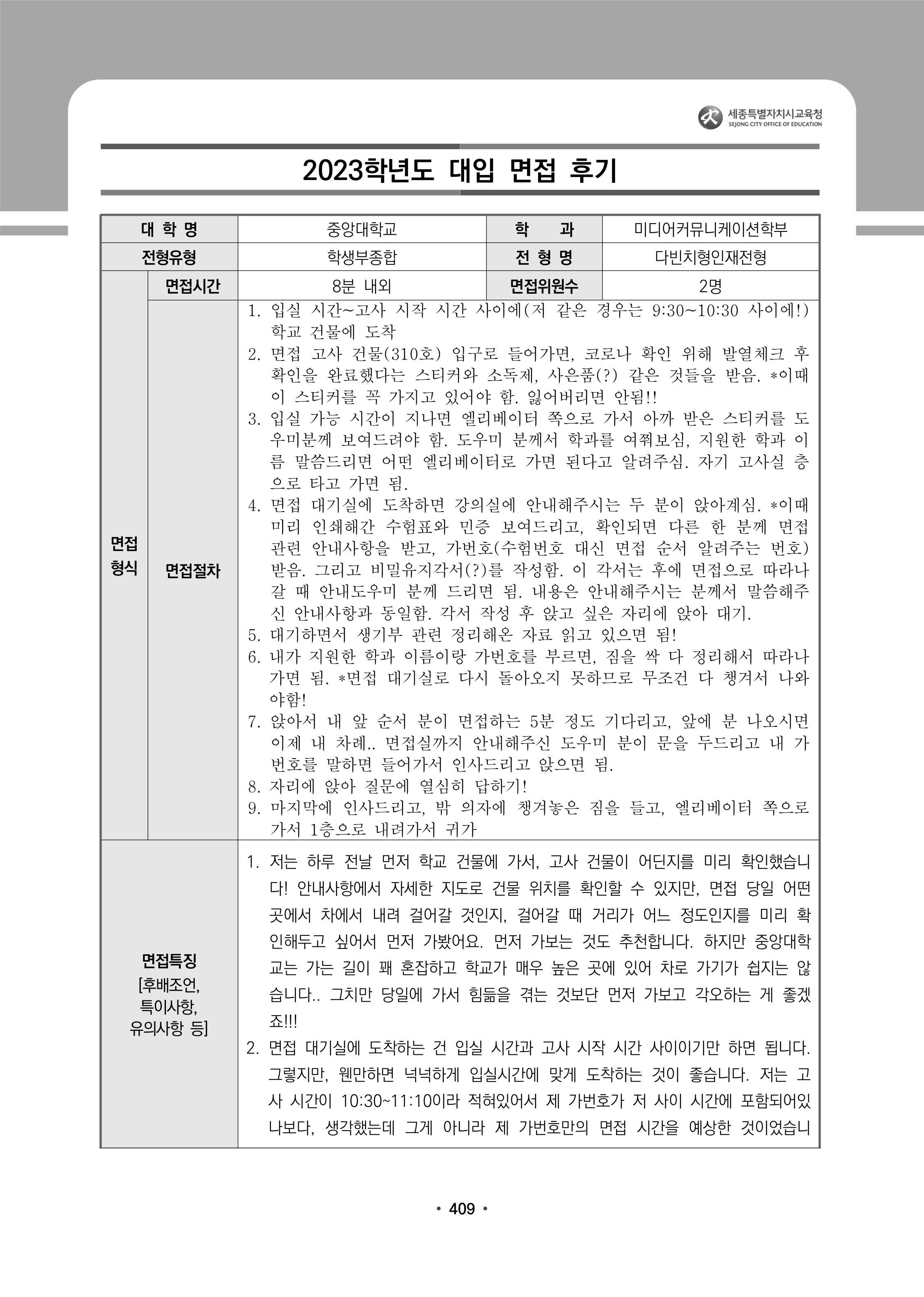 2023학년도 중앙대학교 면접 후기12 - 미디어커뮤니케이션학부