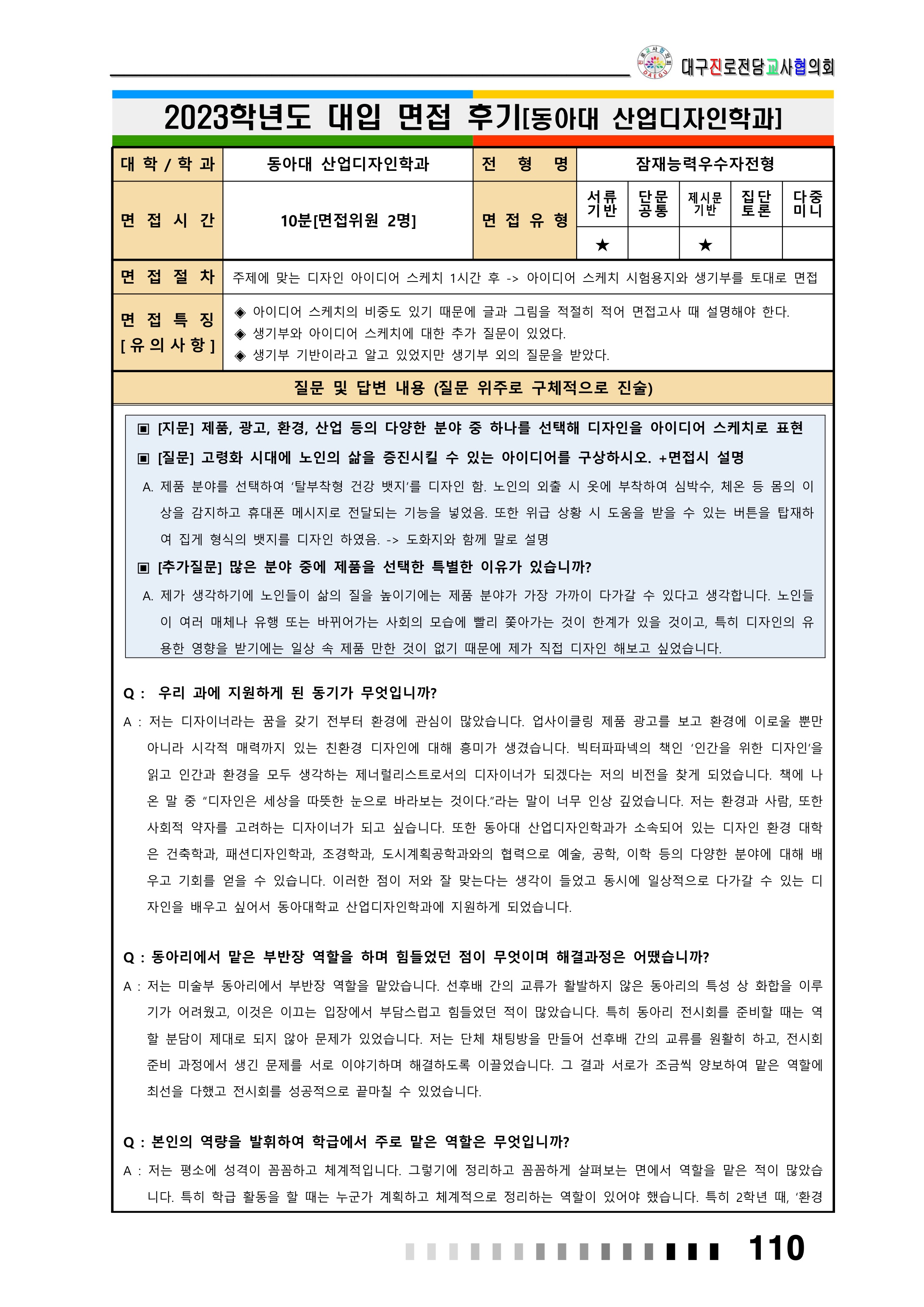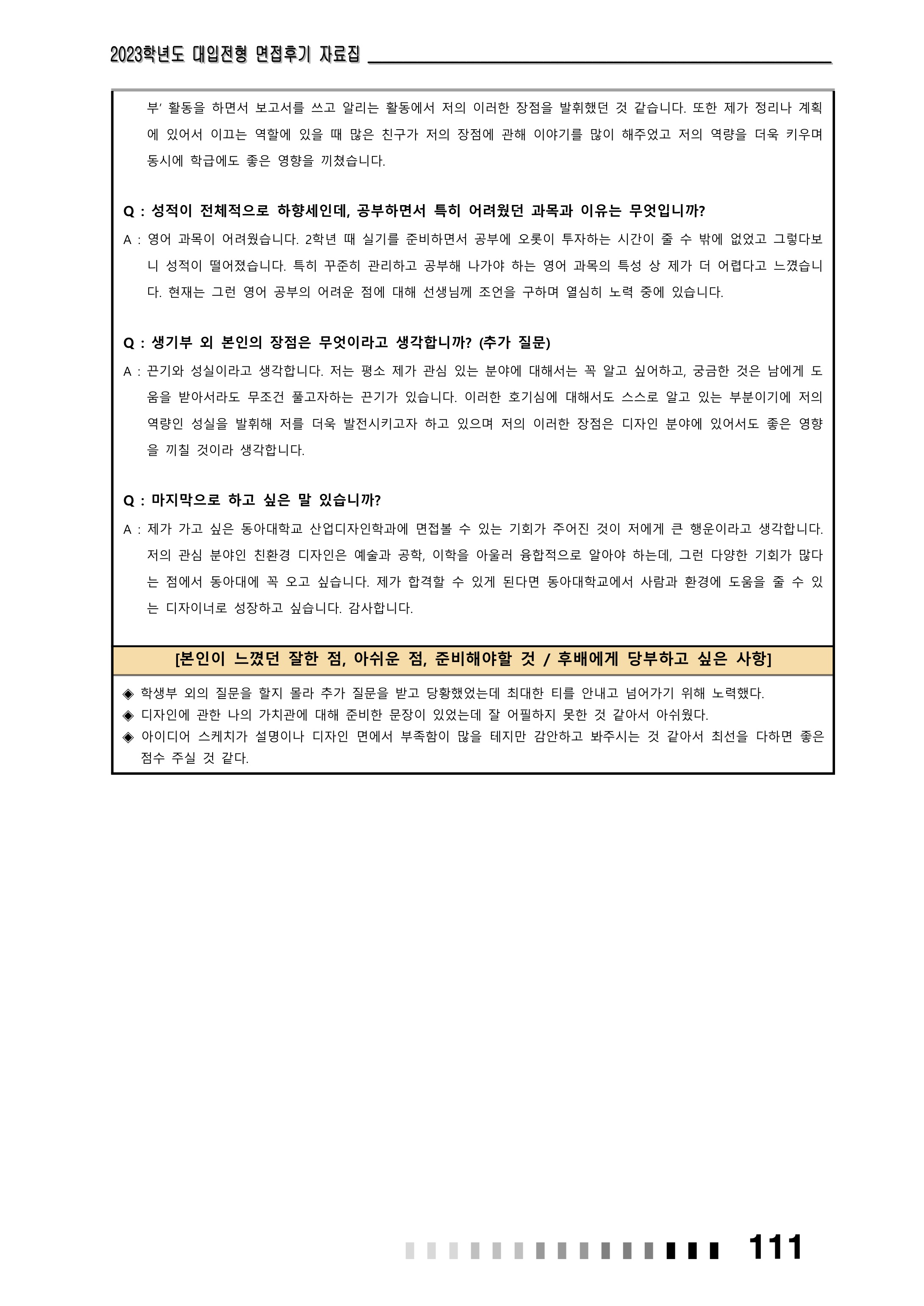 2023학년도 동아대학교 면접 후기2 - 산업디자인학과