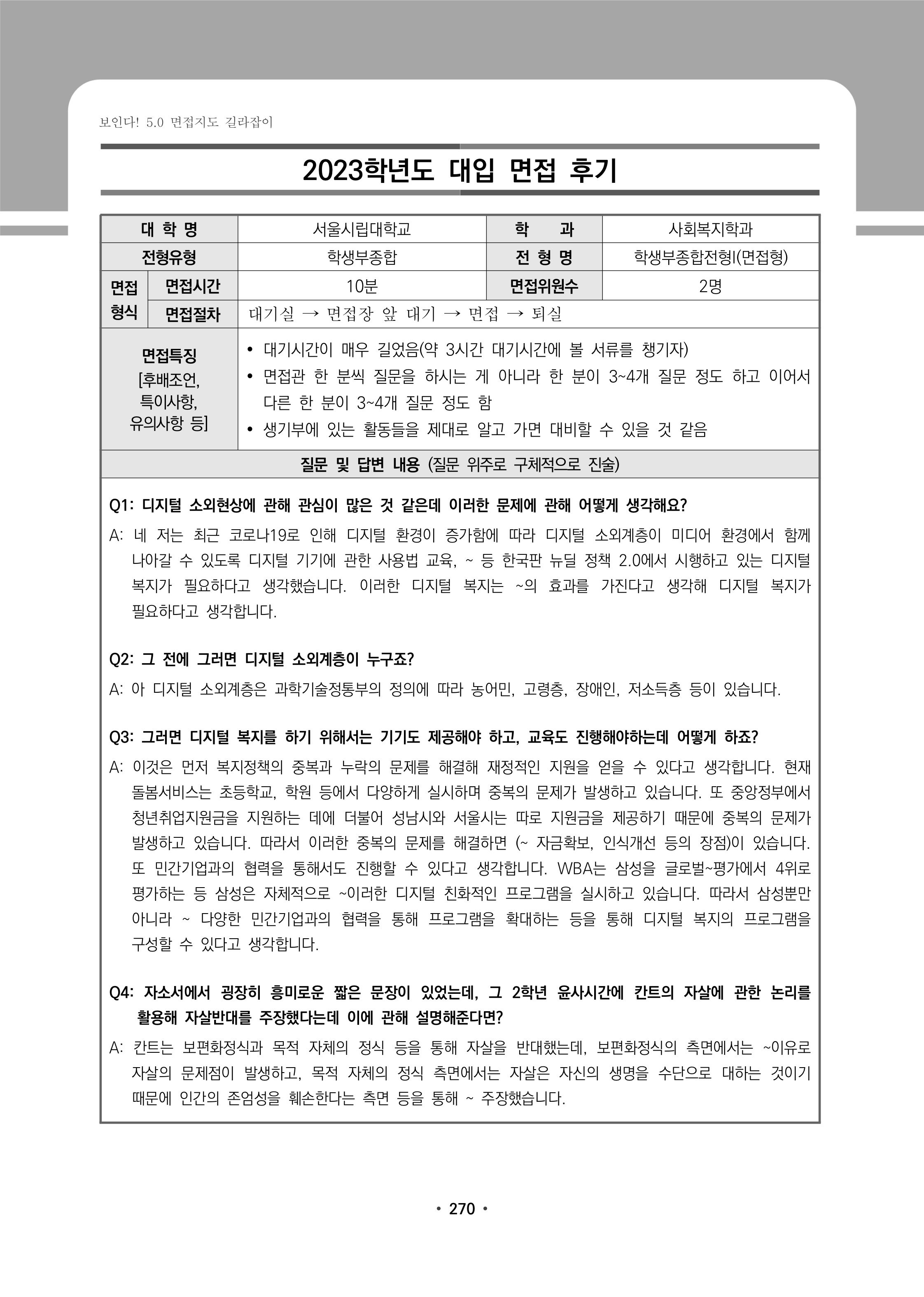 2023학년도 서울시립대학교 면접 후기12 - 사회복지학과