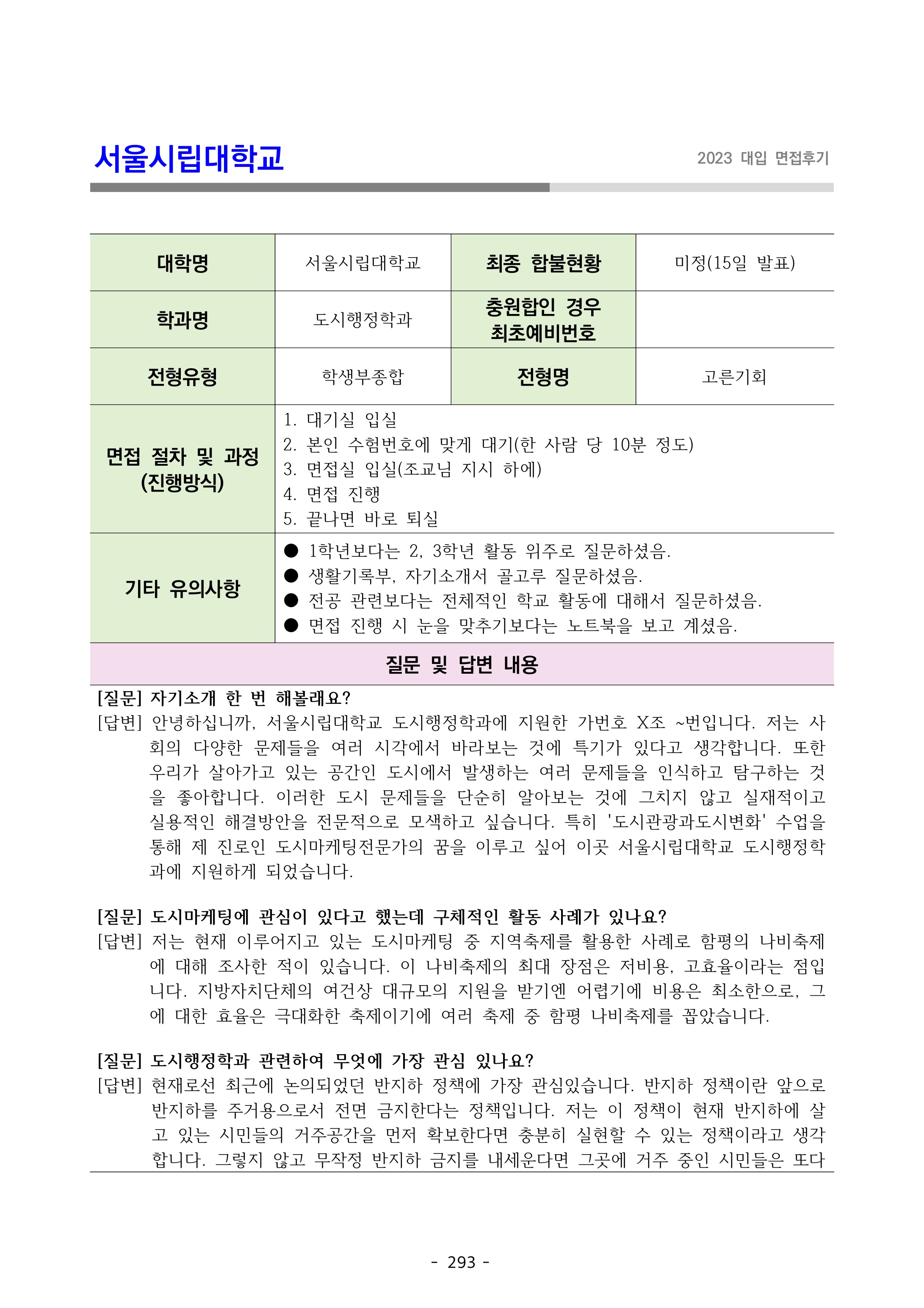 2023학년도 서울시립대학교 면접 후기10 - 도시행정학과