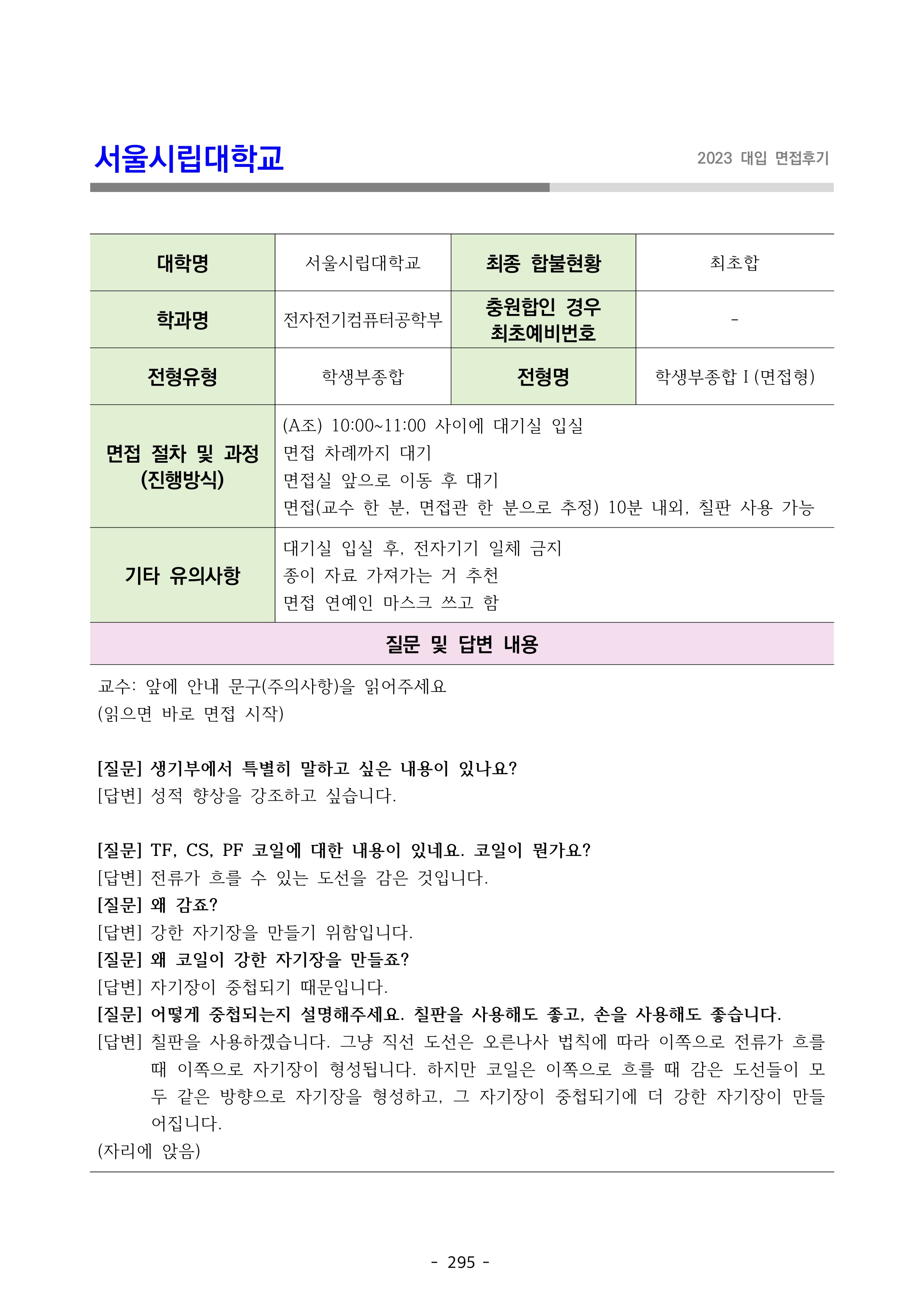 2023학년도 서울시립대학교 면접 후기17 - 전기전자컴퓨터공학부