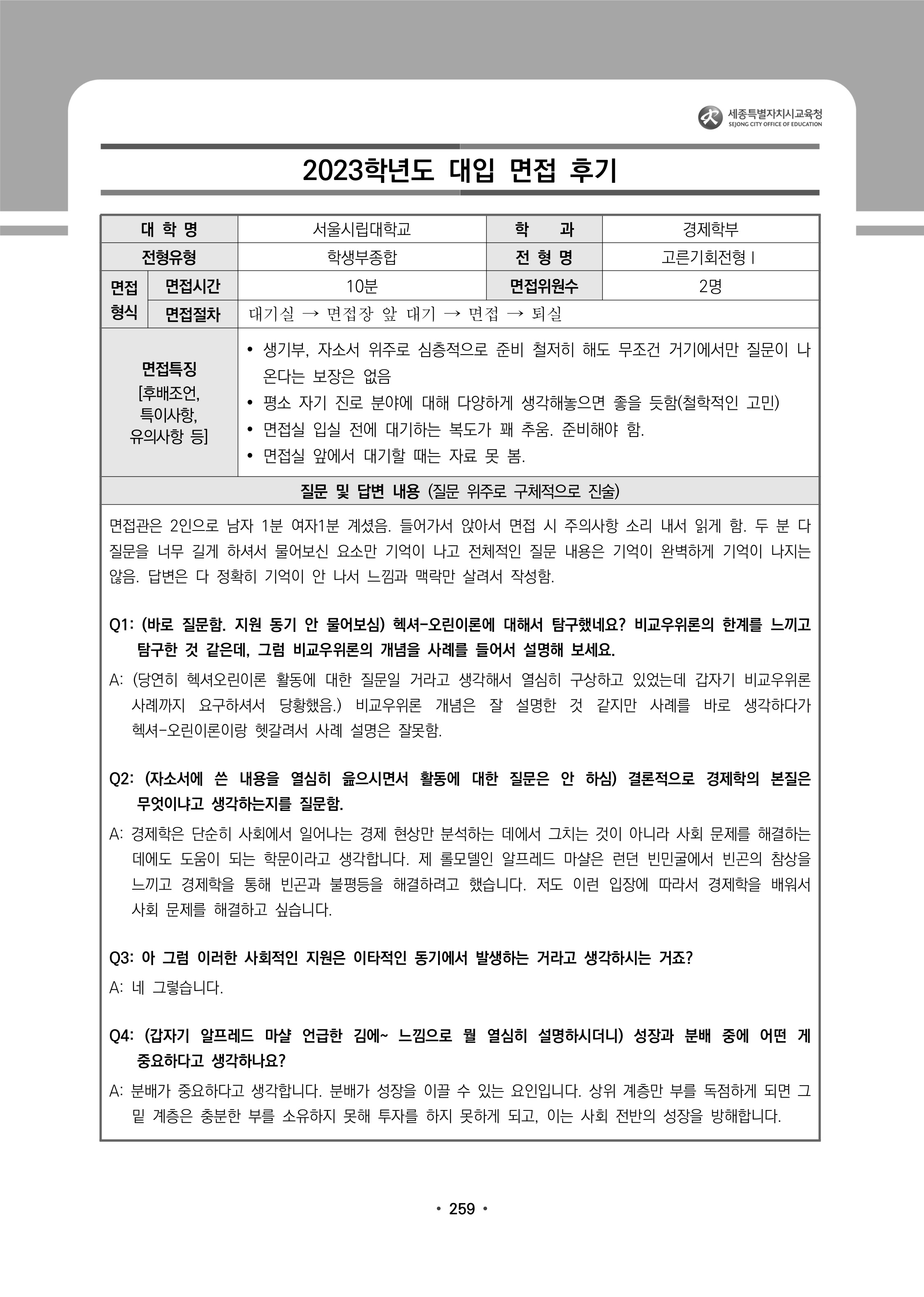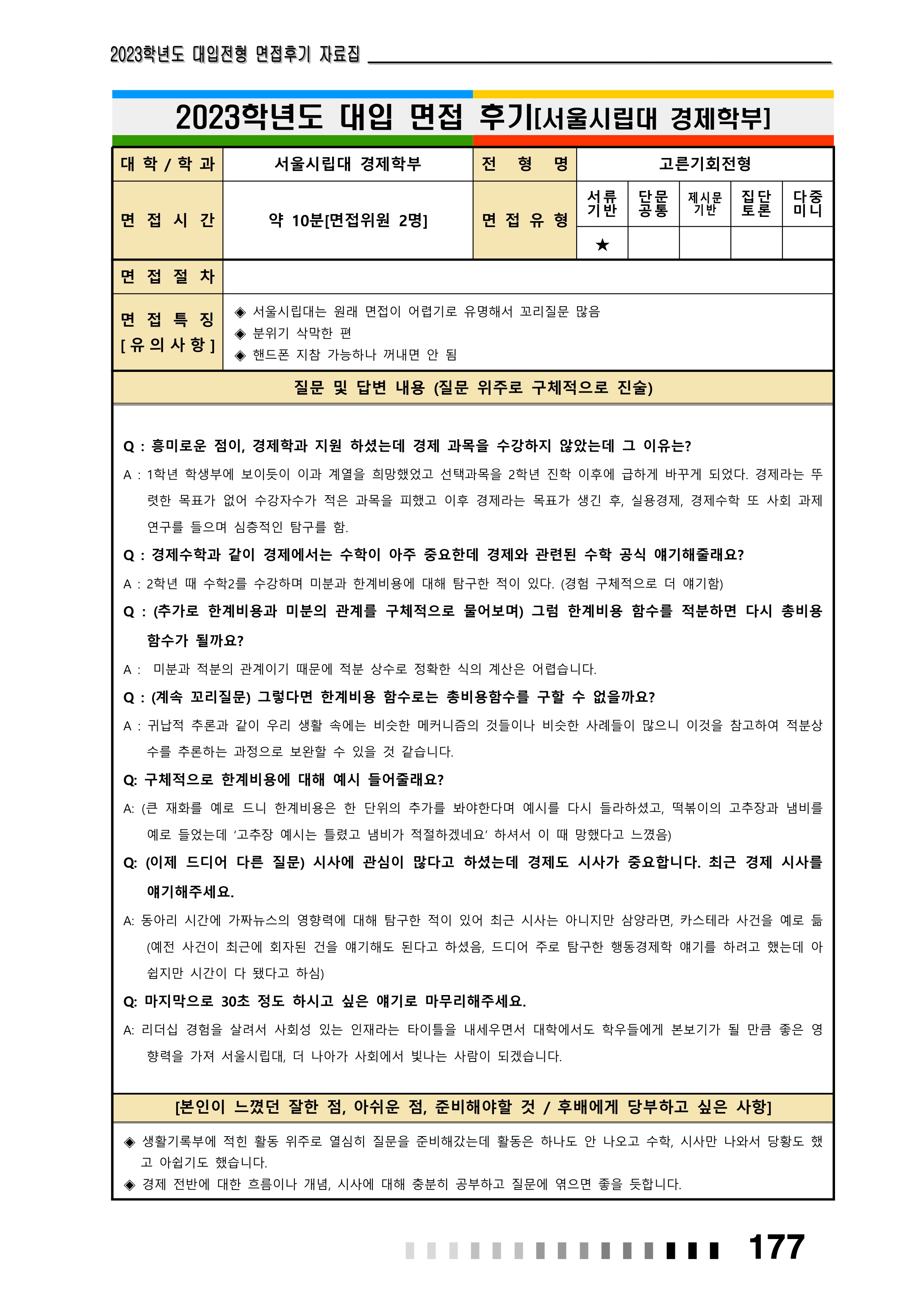 2023학년도 서울시립대학교 면접 후기3 - 경제학부