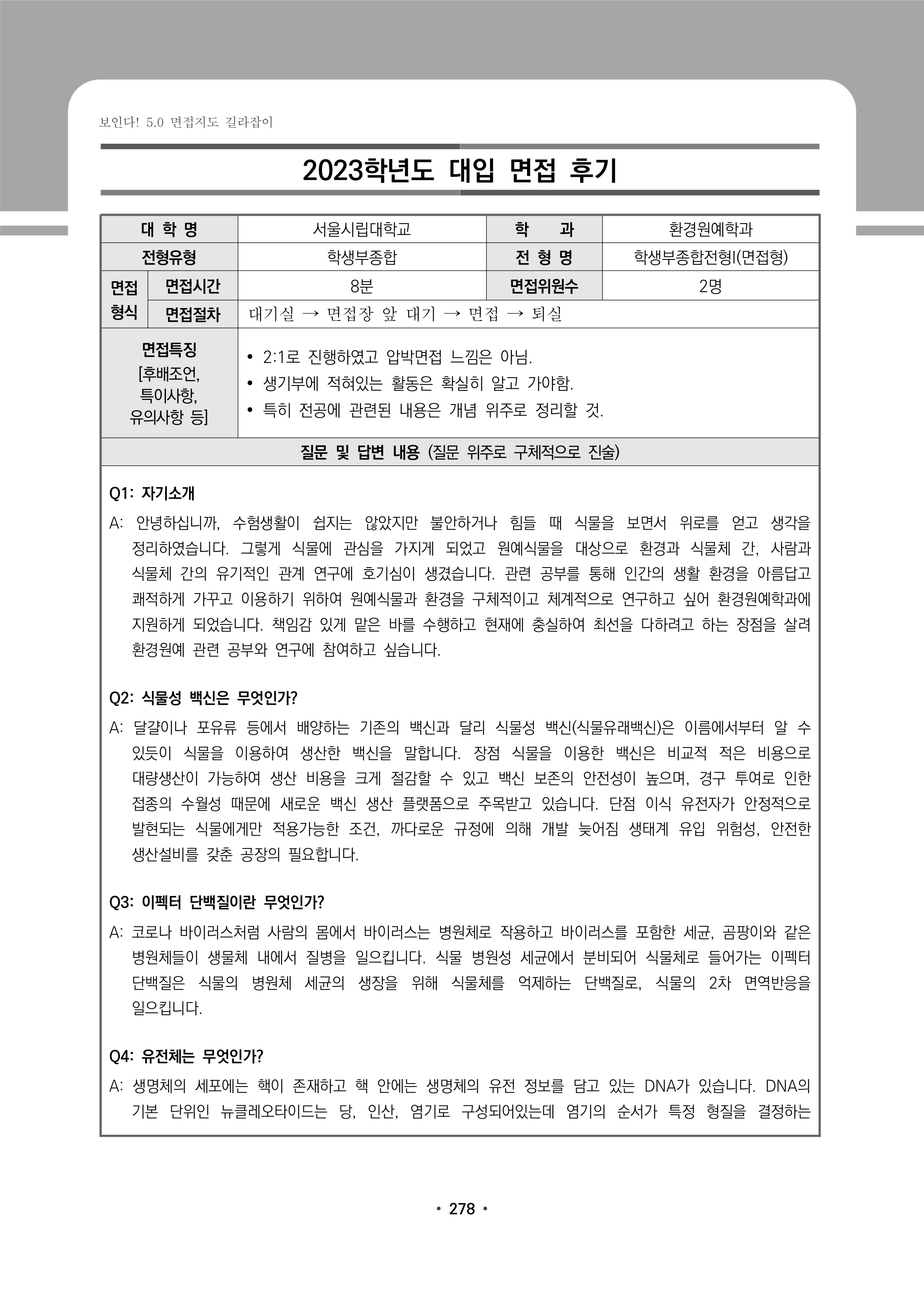 2023학년도 서울시립대학교 면접 후기24 - 환경원예학과