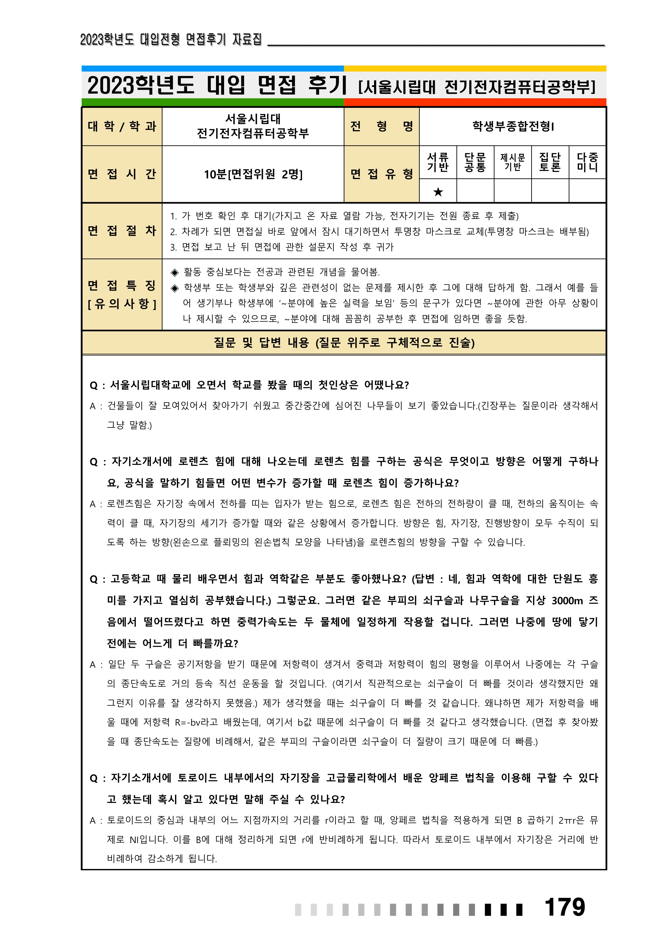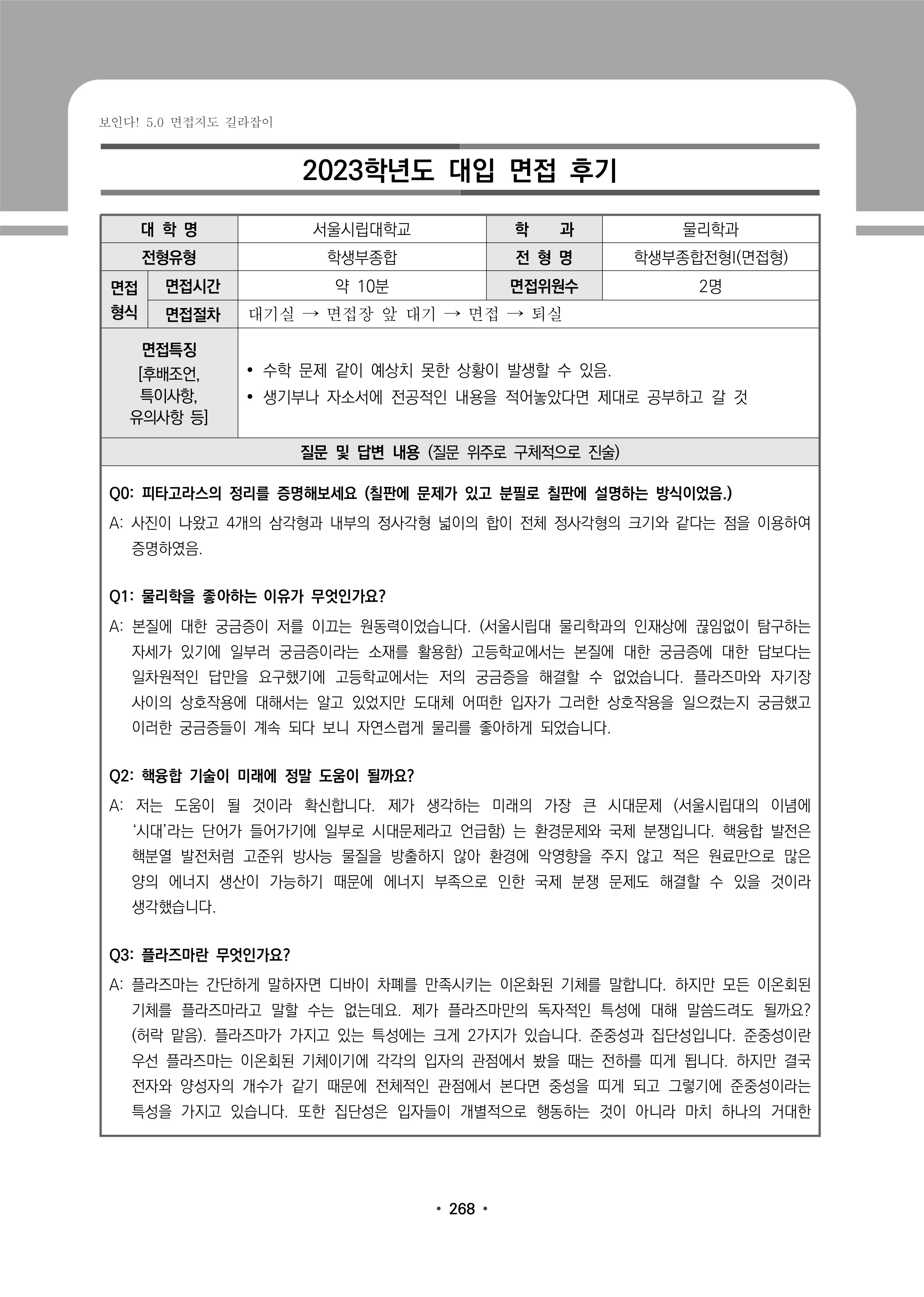 2023학년도 서울시립대학교 면접 후기11 - 물리학과