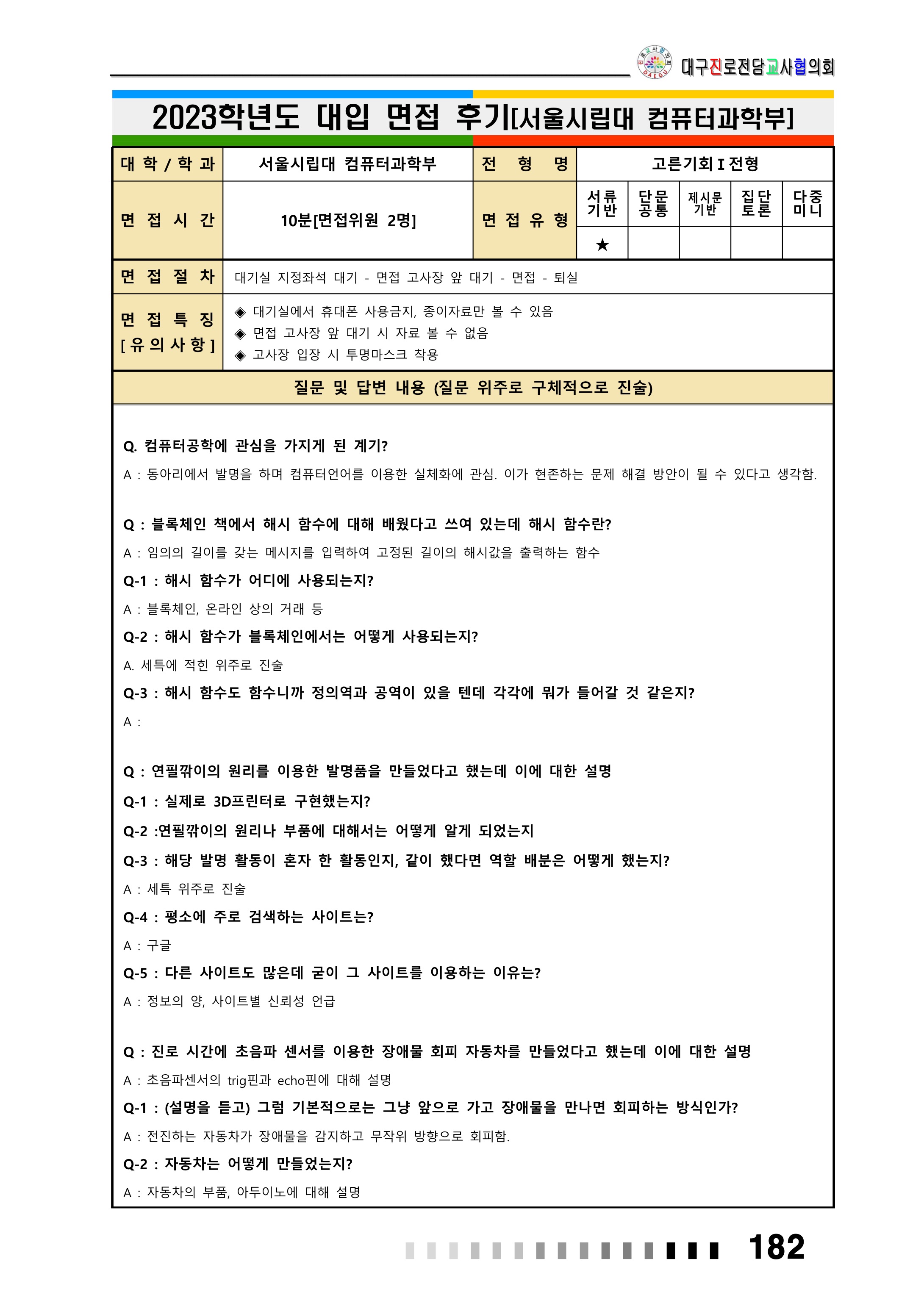 2023학년도 서울시립대학교 면접 후기19 - 컴퓨터과학부 2023학년도 서울시립대학교 면접 후기20 - 컴퓨터과학부