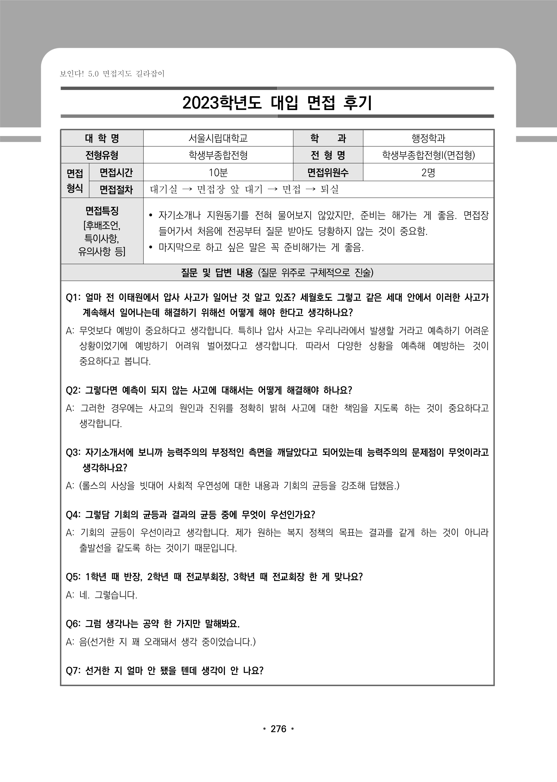 2023학년도 서울시립대학교 면접 후기22 - 행정학과