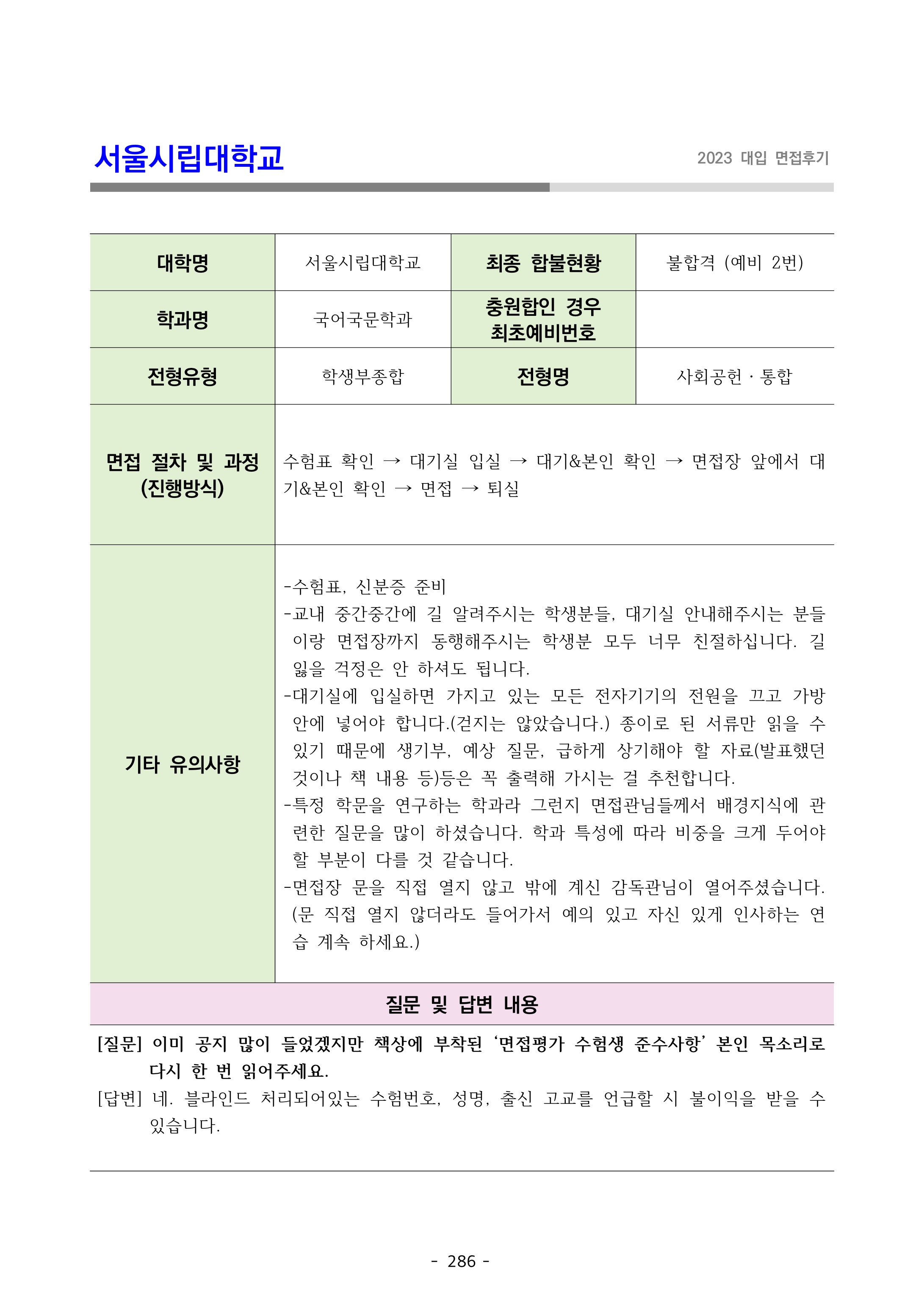 2023학년도 서울시립대학교 면접 후기5 - 국어국문학과 2023학년도 서울시립대학교 면접 후기6 - 국어국문학과