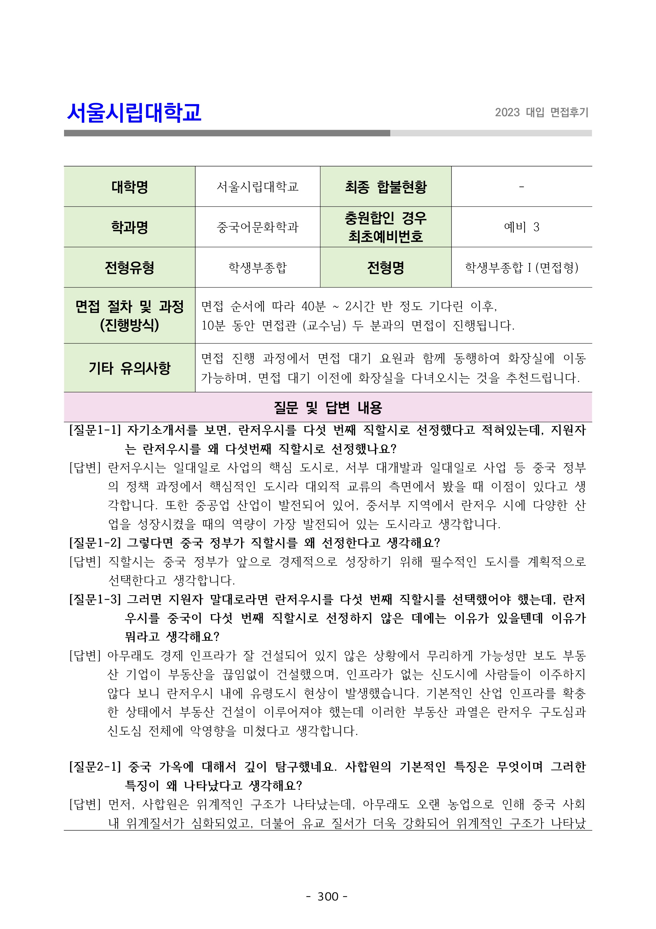 2023학년도 서울시립대학교 면접 후기18 - 중국어문화학과