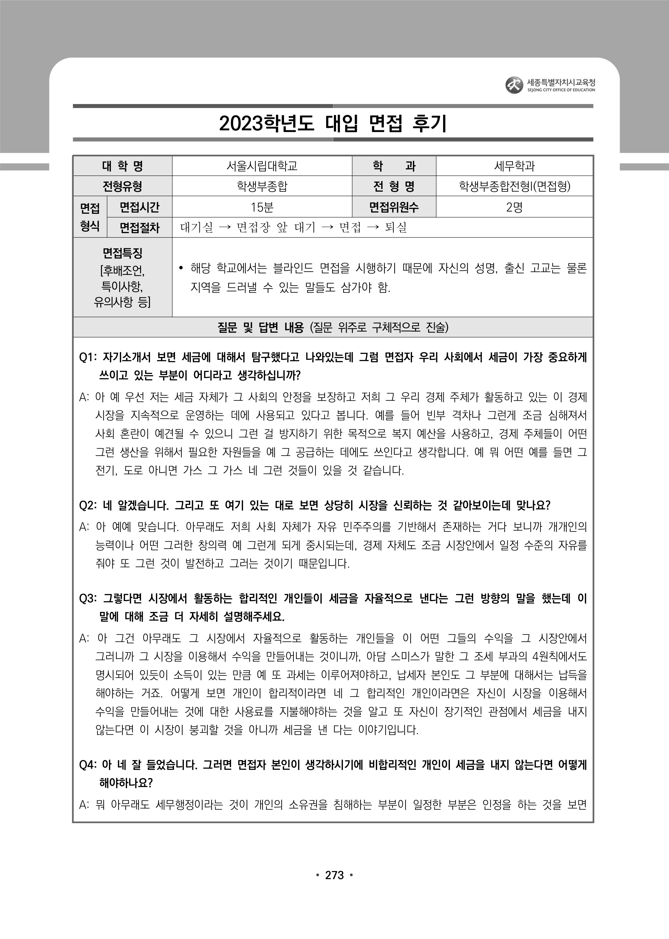 2023학년도 서울시립대학교 면접 후기13 - 세무학과