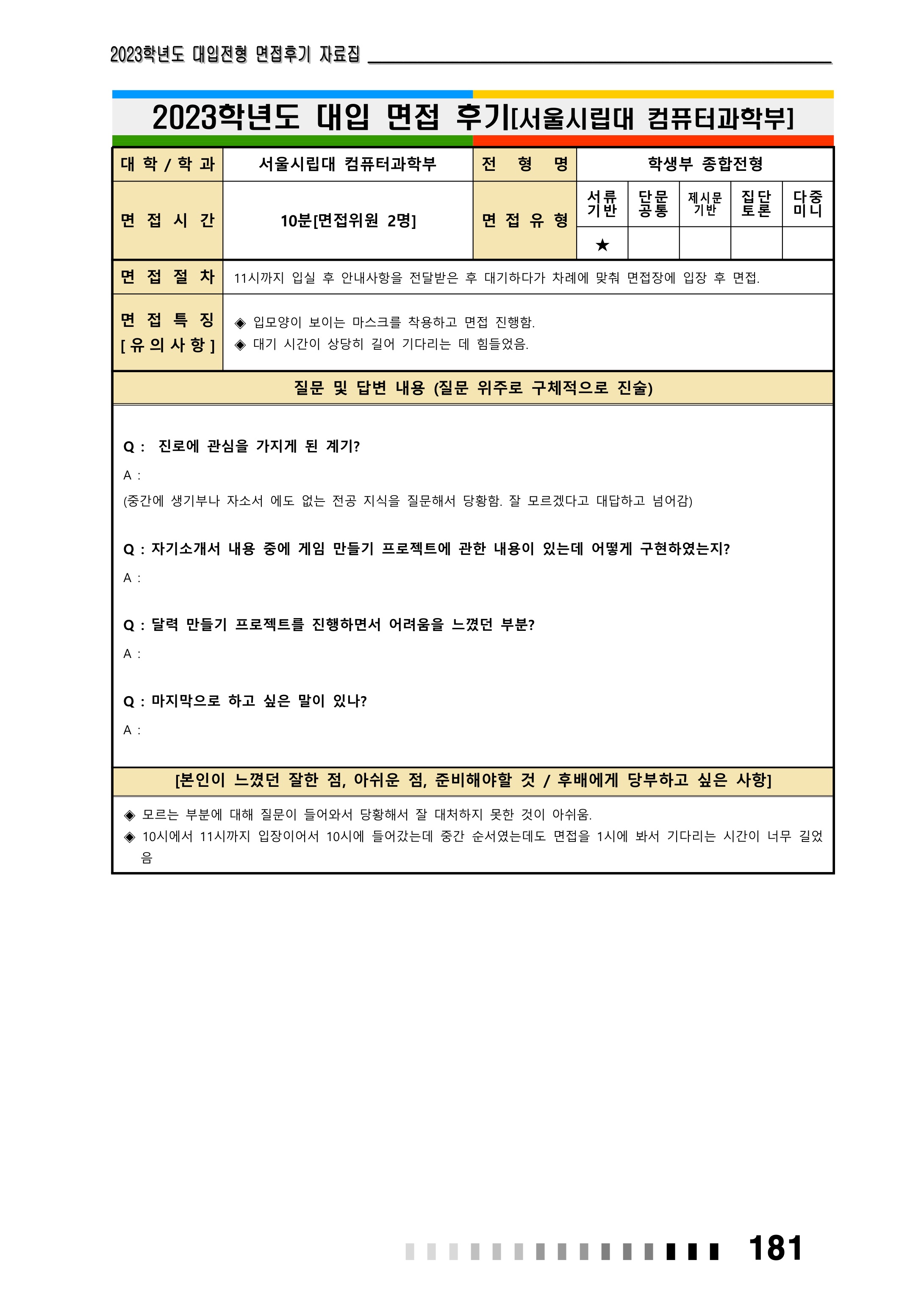 2023학년도 서울시립대학교 면접 후기20 - 컴퓨터과학부