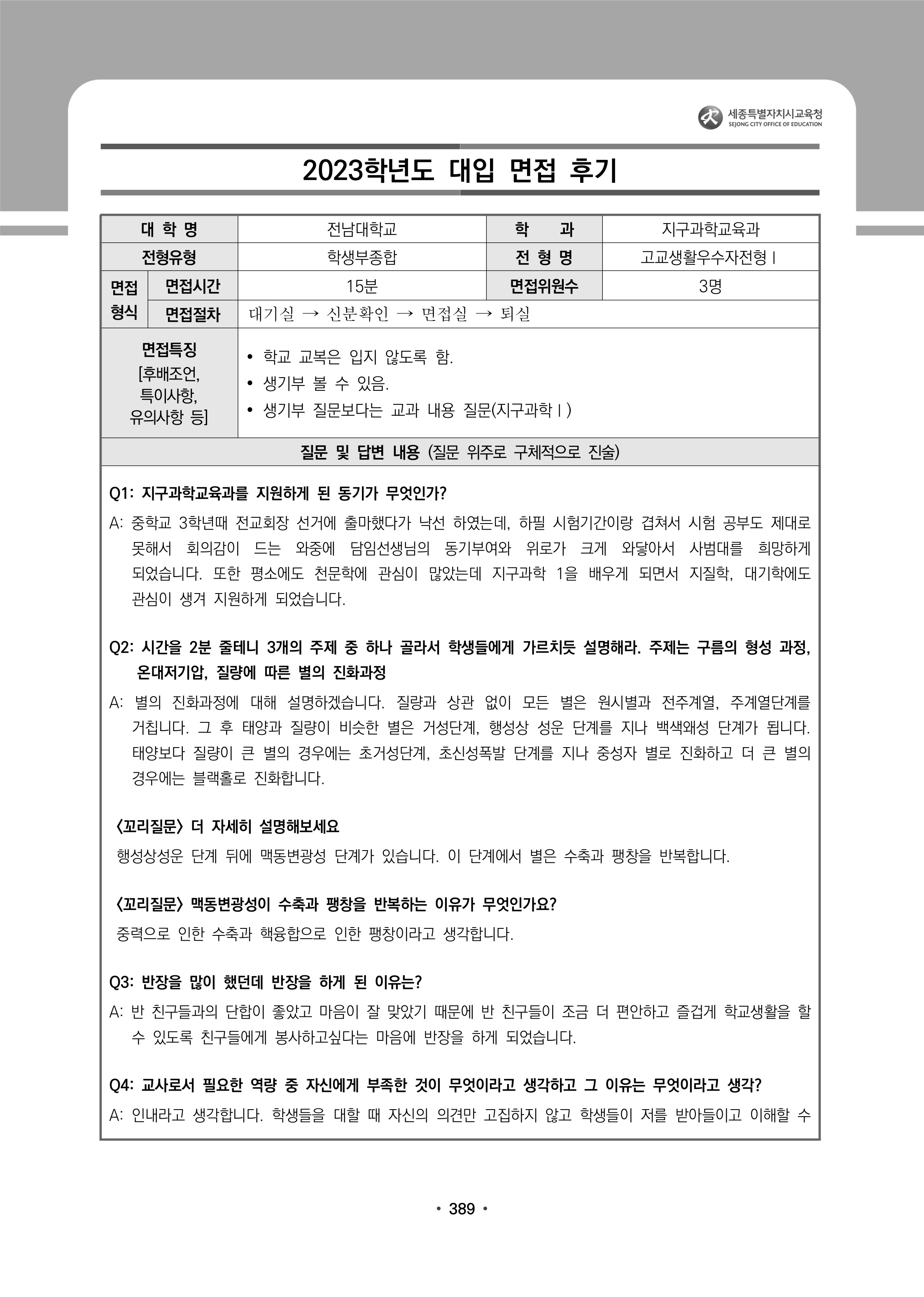 전남대학교 지리교육과2023학년도 전남대학교 면접 후기1 - 지구과학교육과
