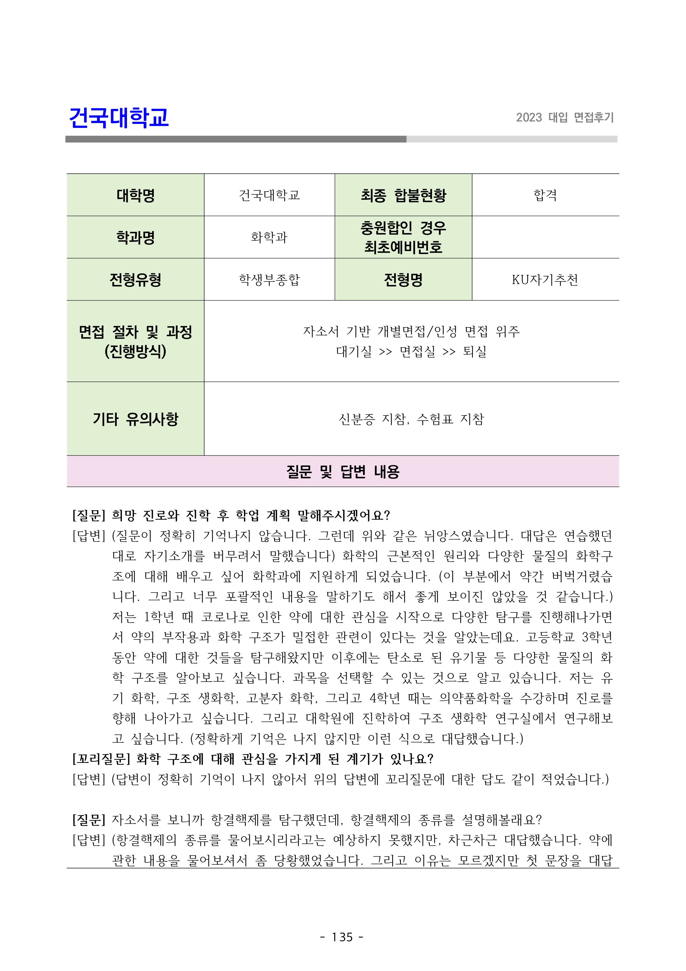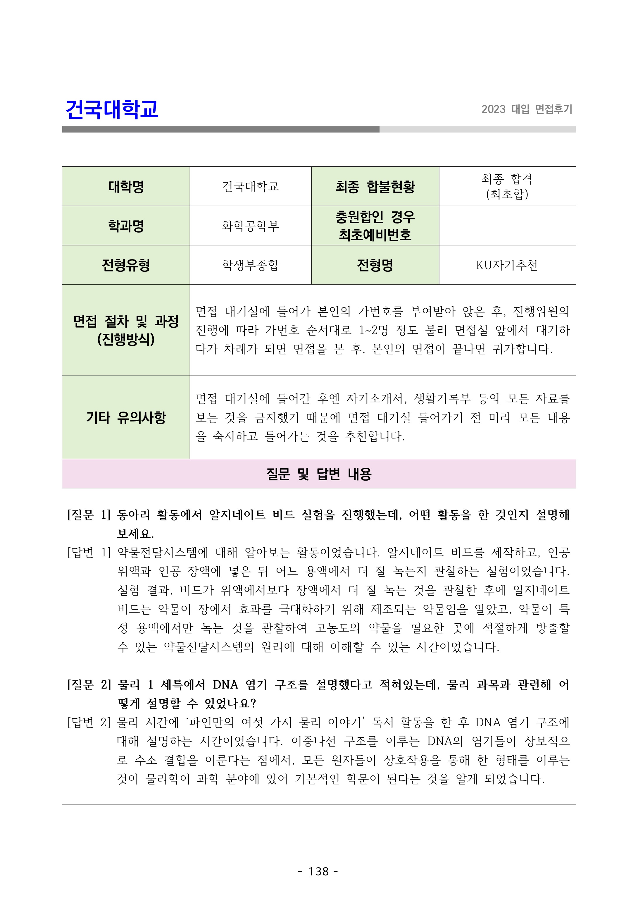2023학년도 건국대학교 면접 후기35 - 화학과