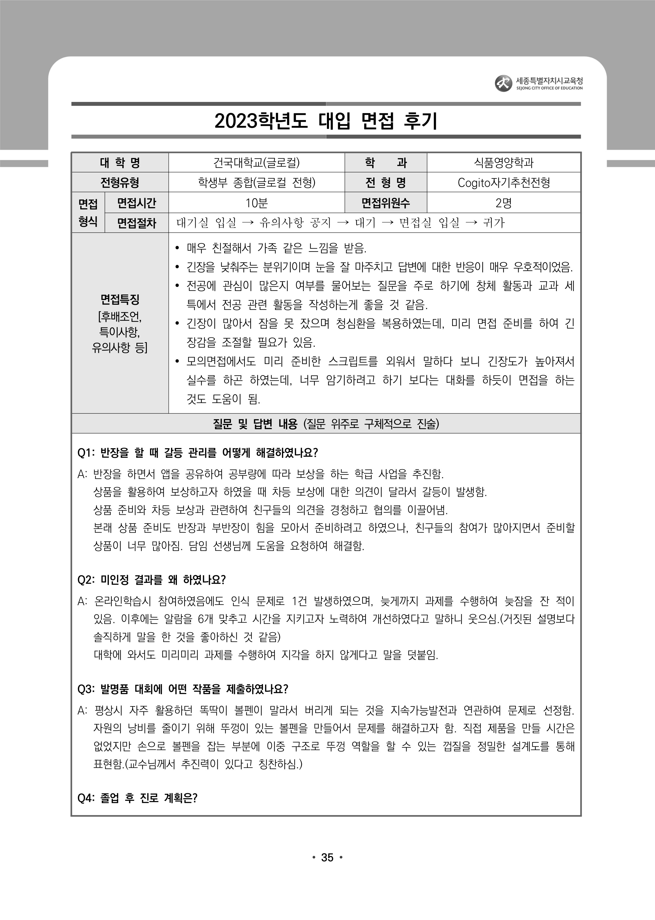 2023학년도 건국대학교 글로컬캠퍼스 면접 후기7 - 식품영양학과