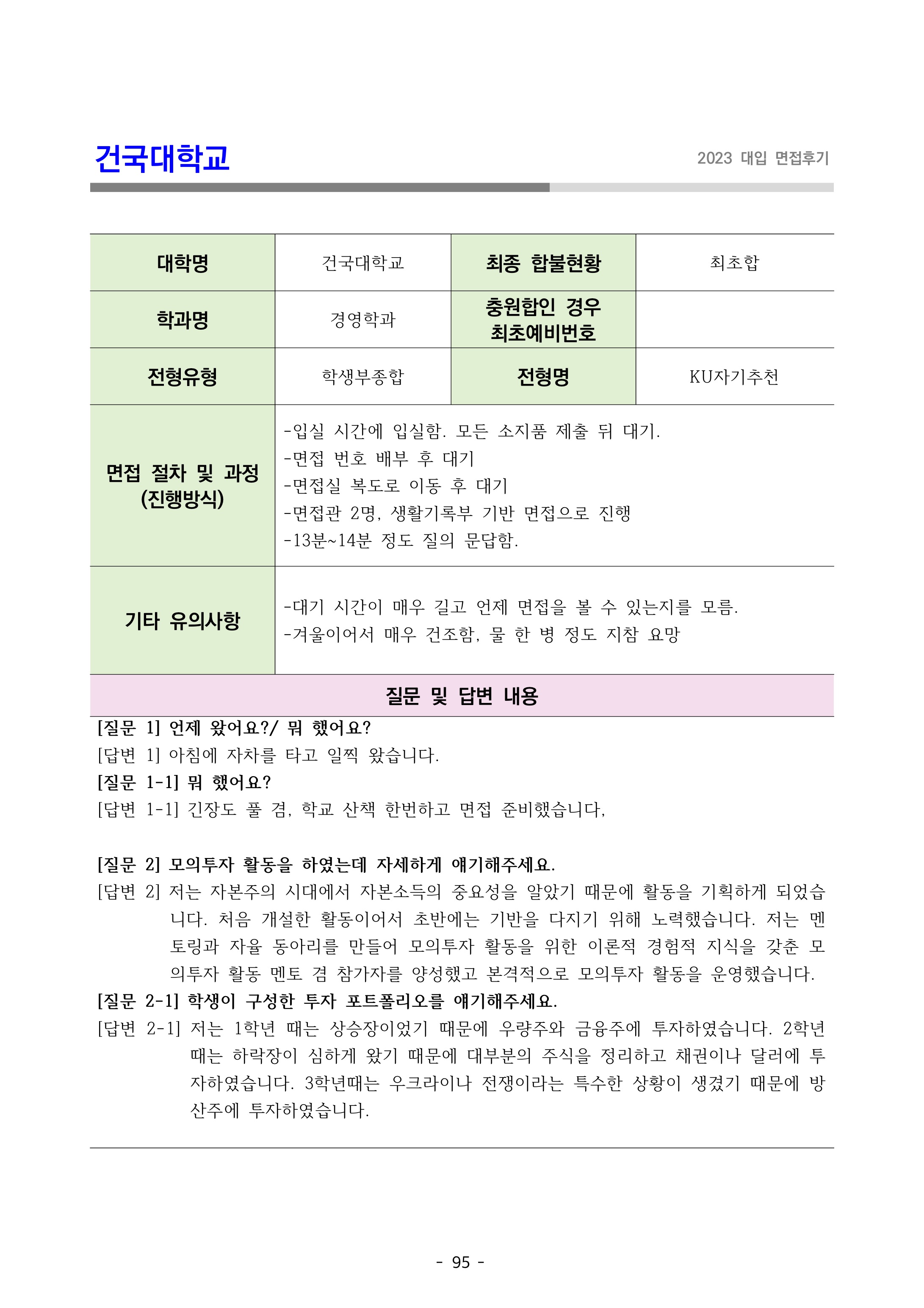 2023학년도 건국대학교 면접 후기6 - 경영학과 2023학년도 건국대학교 면접 후기7 - 경제학과