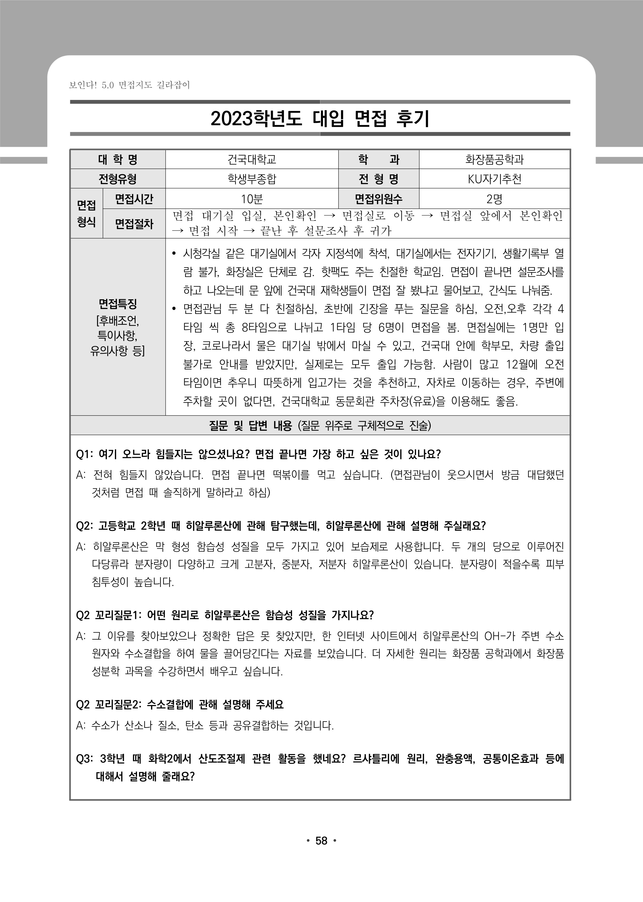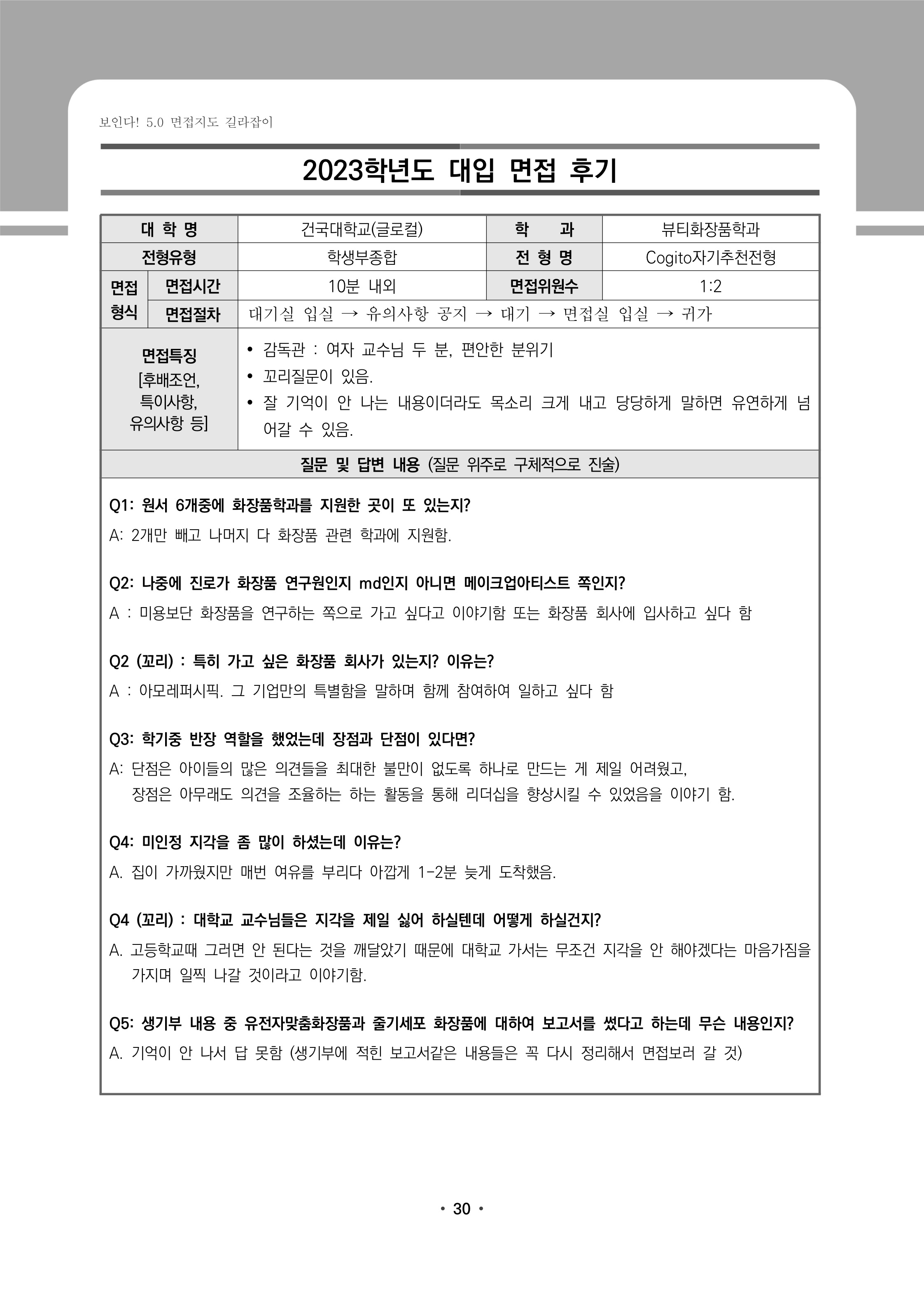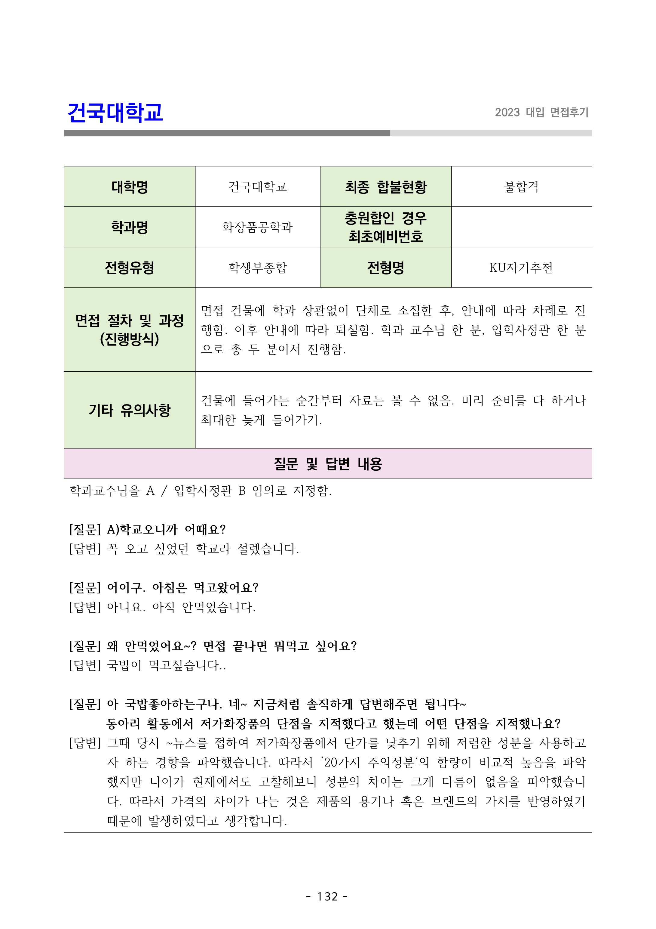 2023학년도 건국대학교 면접 후기32 - 화장품공학과