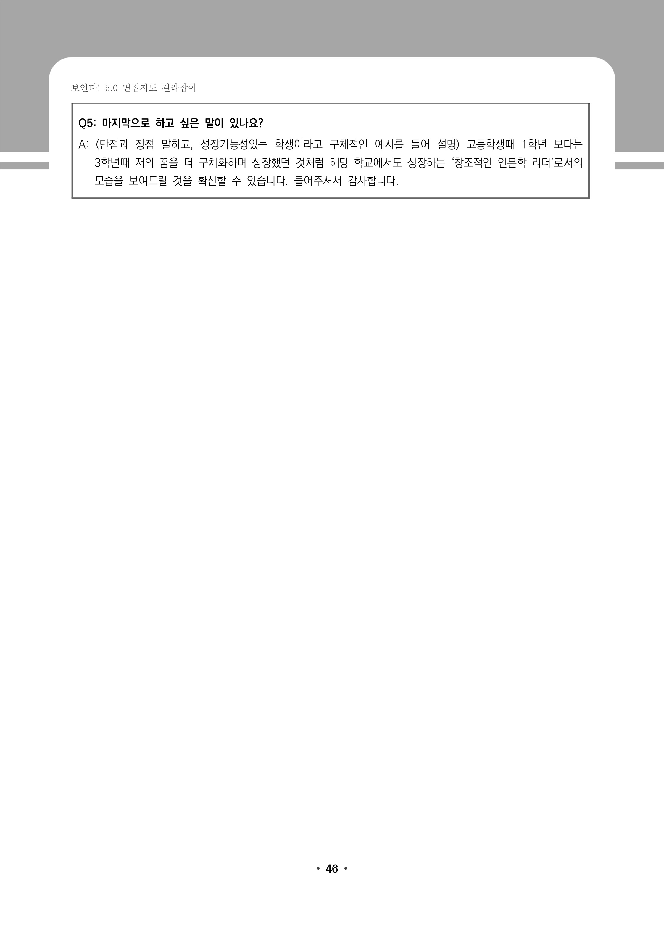 2023학년도 경기대학교 면접 질문 (0) 2023.12.01 2023학년도 가톨릭대학교 면접 질문 (0) 2023.11.30 2023학년도 전남대학교 면접 질문 (0) 2023.11.29 2023학년도 숭실대학교 면접 질문 (0) 2023.11.29 2023학년도 홍익대학교 면접 질문 (3) 2023.11.26