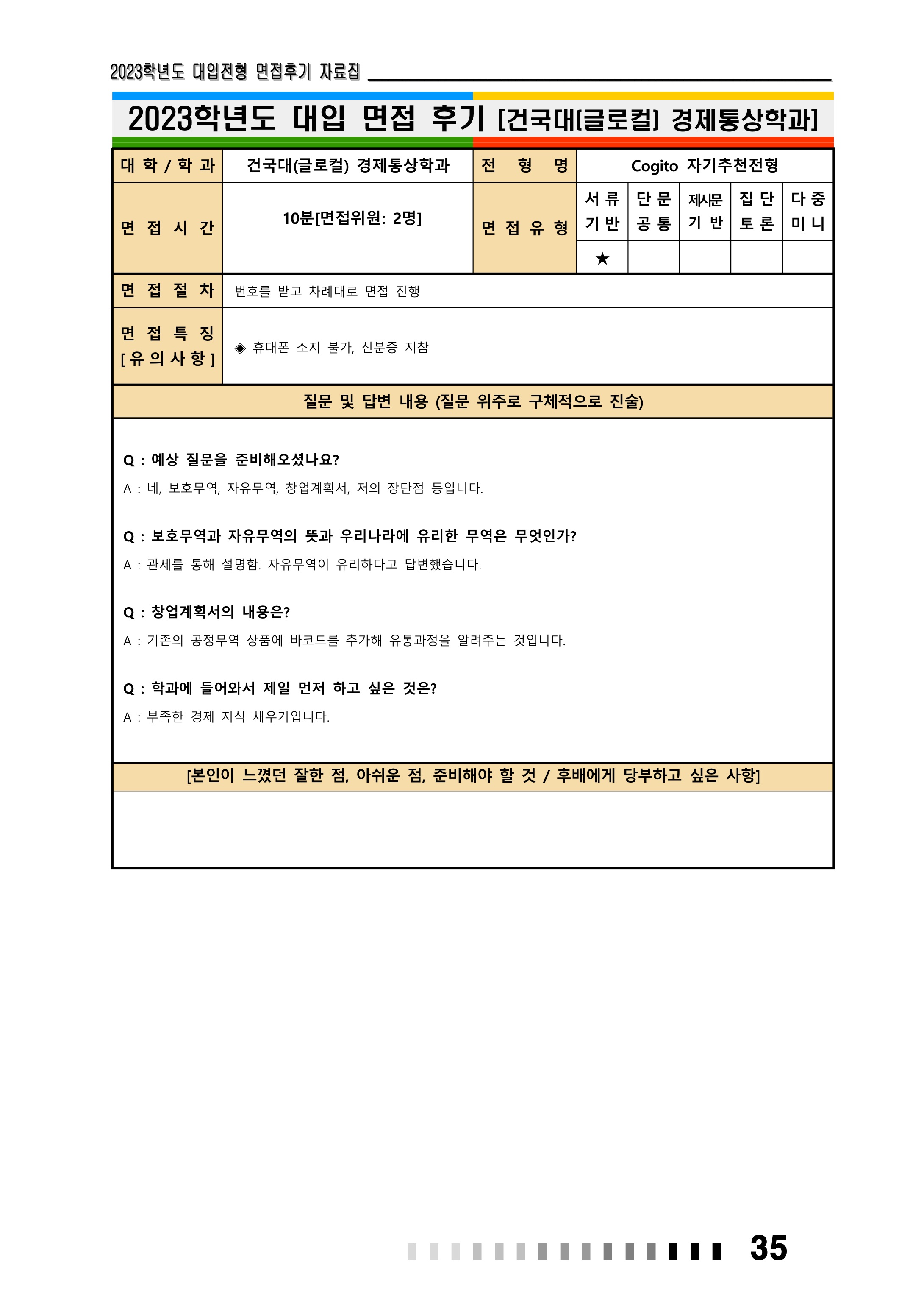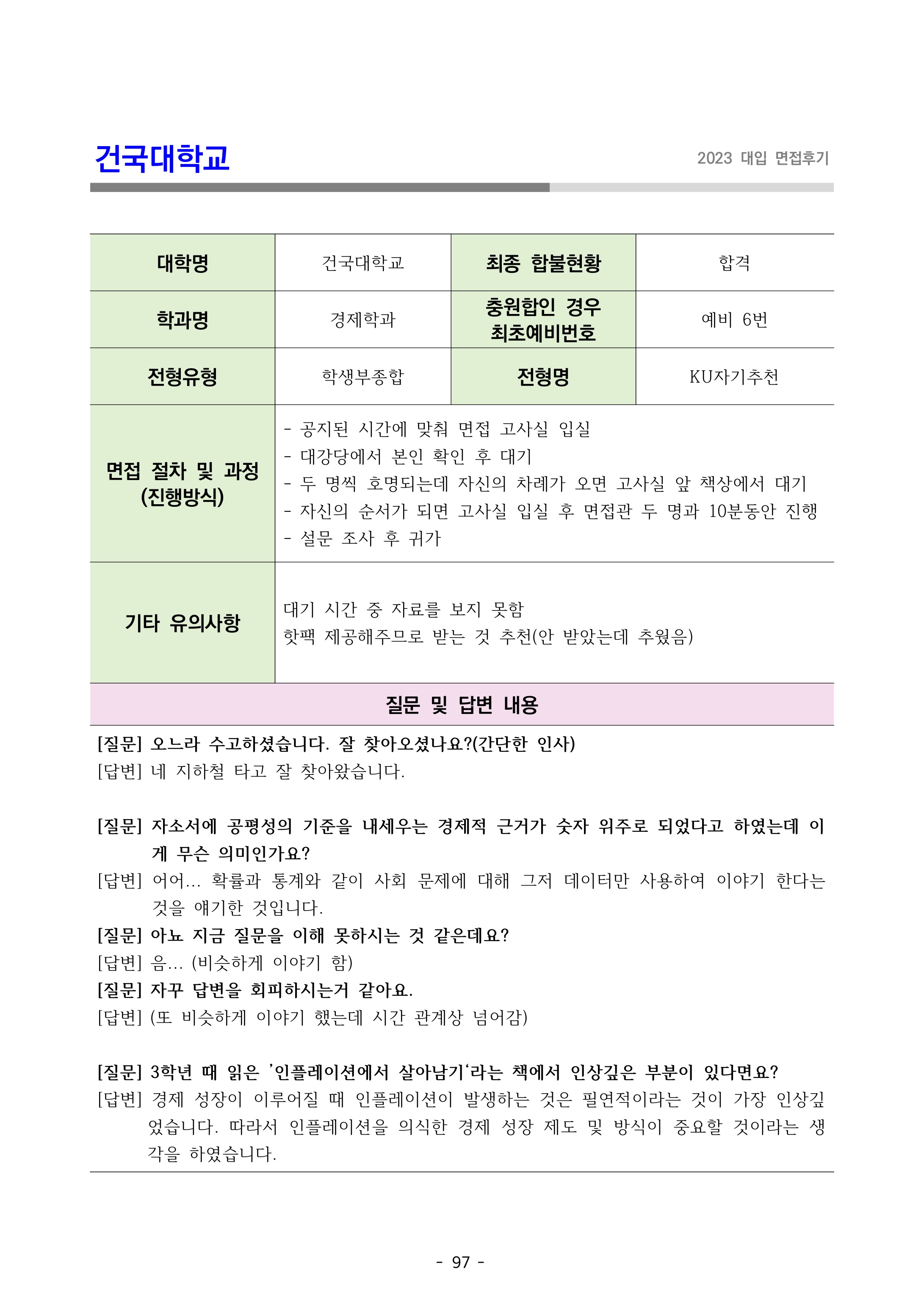 2023학년도 건국대학교 면접 후기7 - 경제학과
