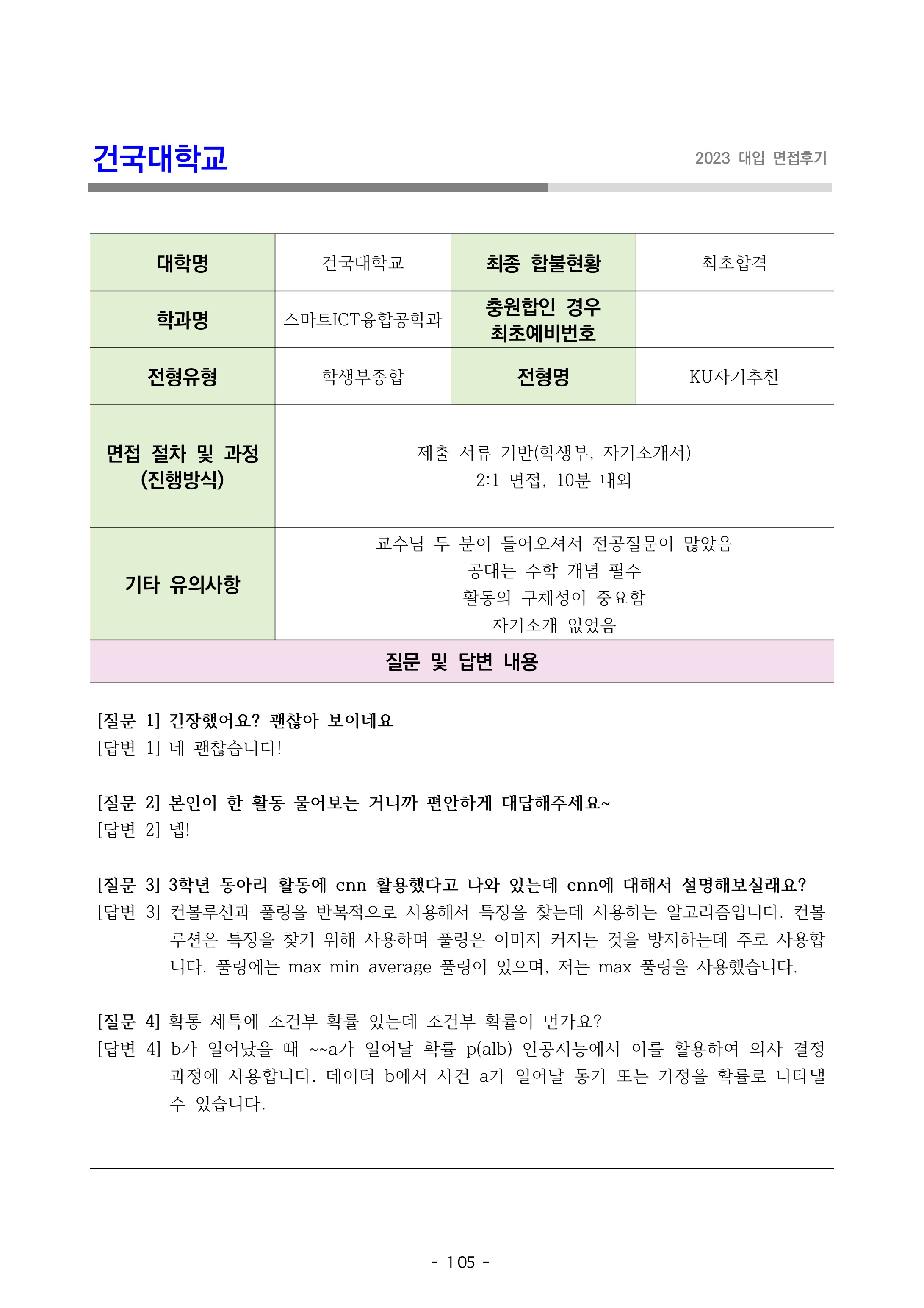 2023학년도 건국대학교 면접 후기16 - 스마트ICT융합공학과