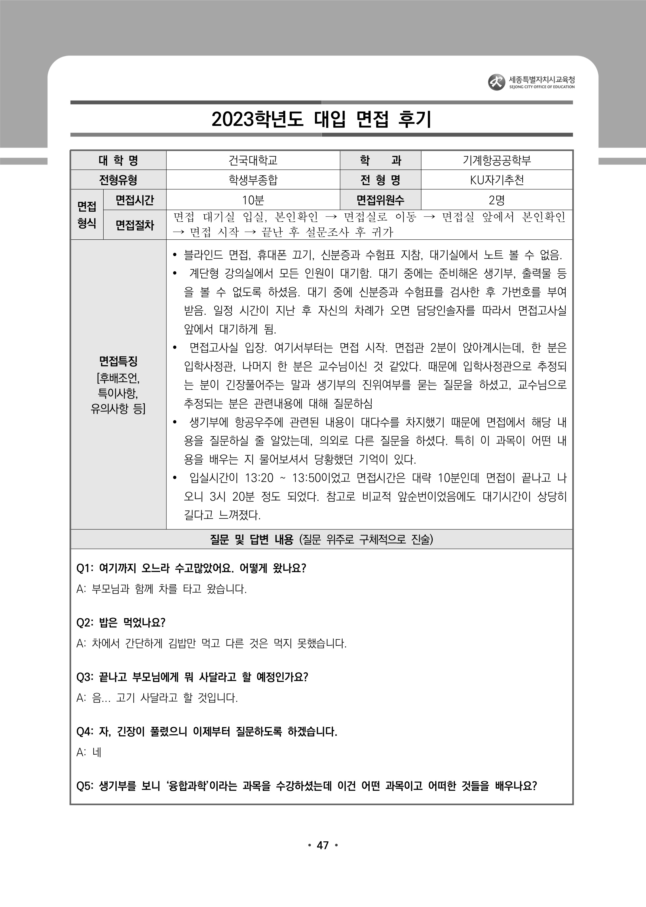 2023학년도 건국대학교 면접 후기11 - 기계항공공학부