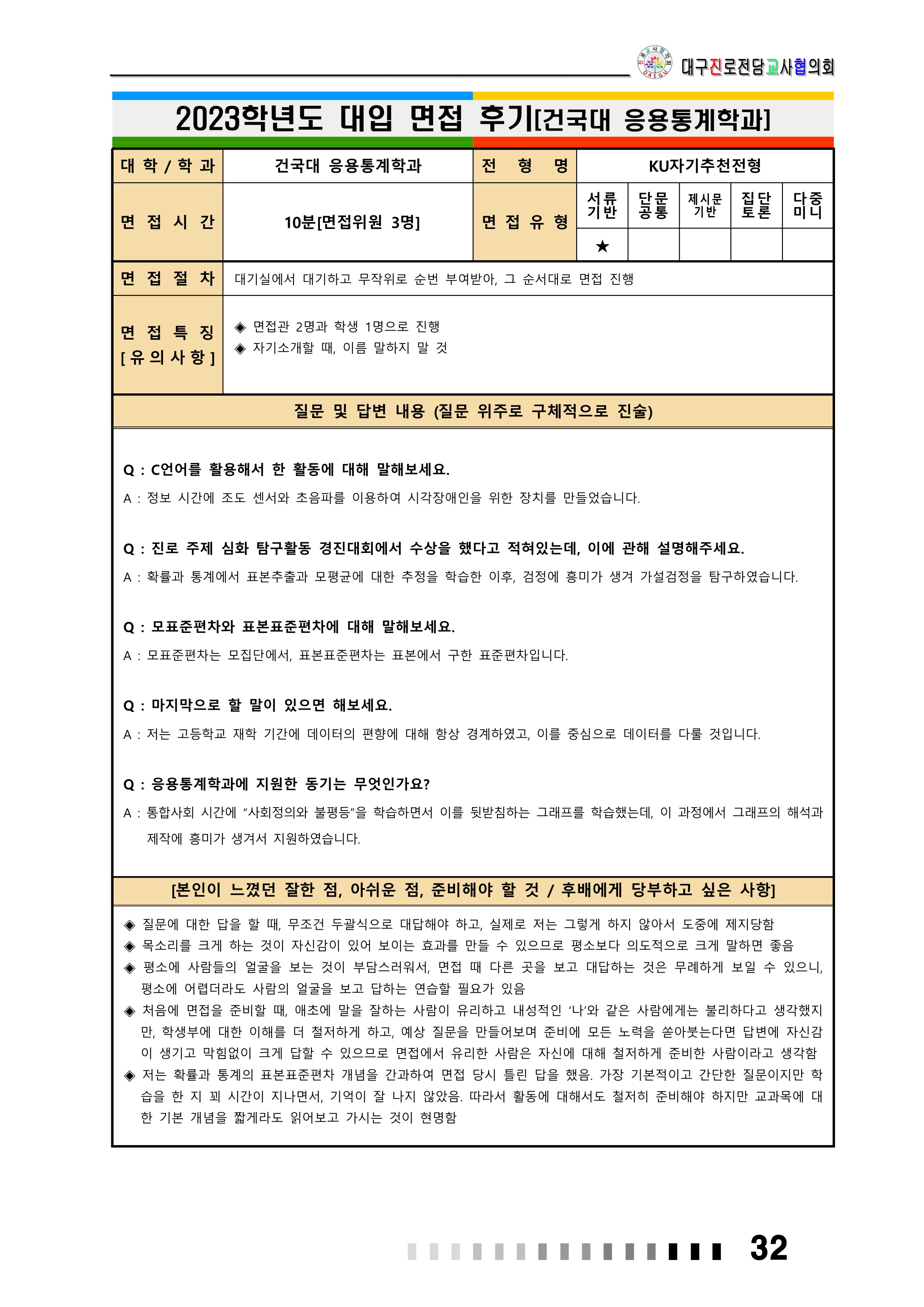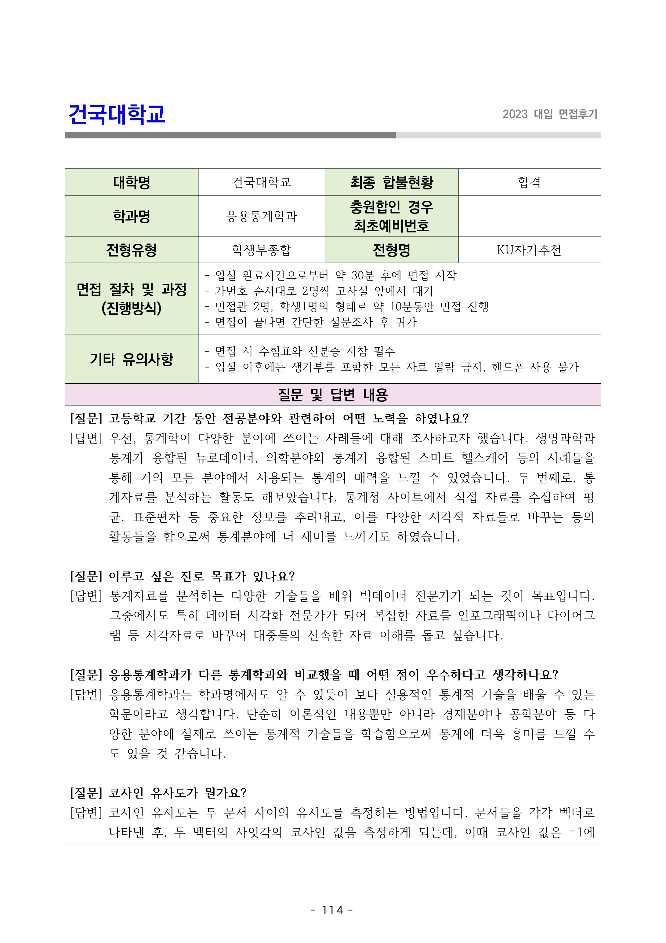 2023학년도 건국대학교 면접 후기20 - 응용통계학과