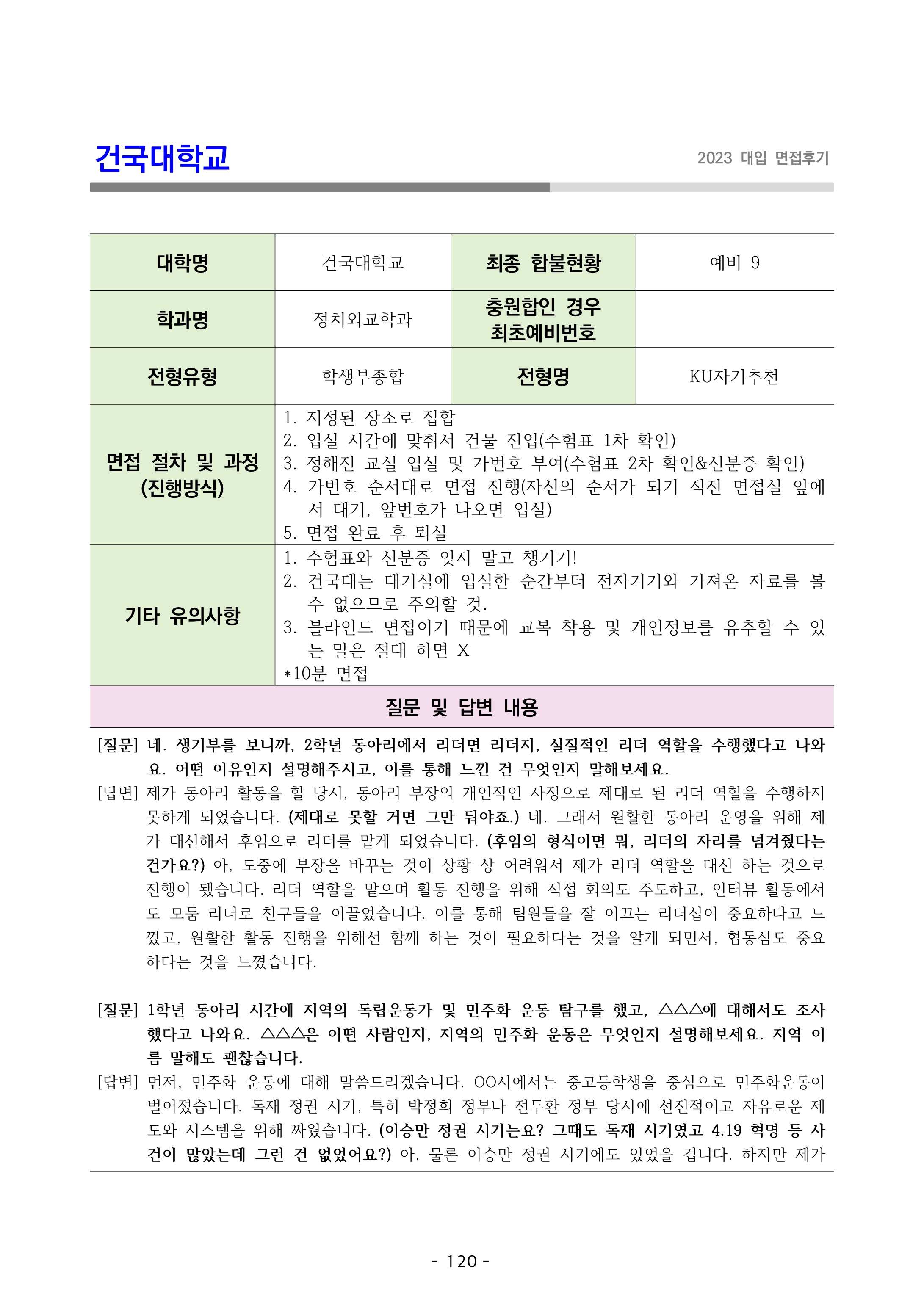 2023학년도 건국대학교 면접 후기25 - 정치외교학과