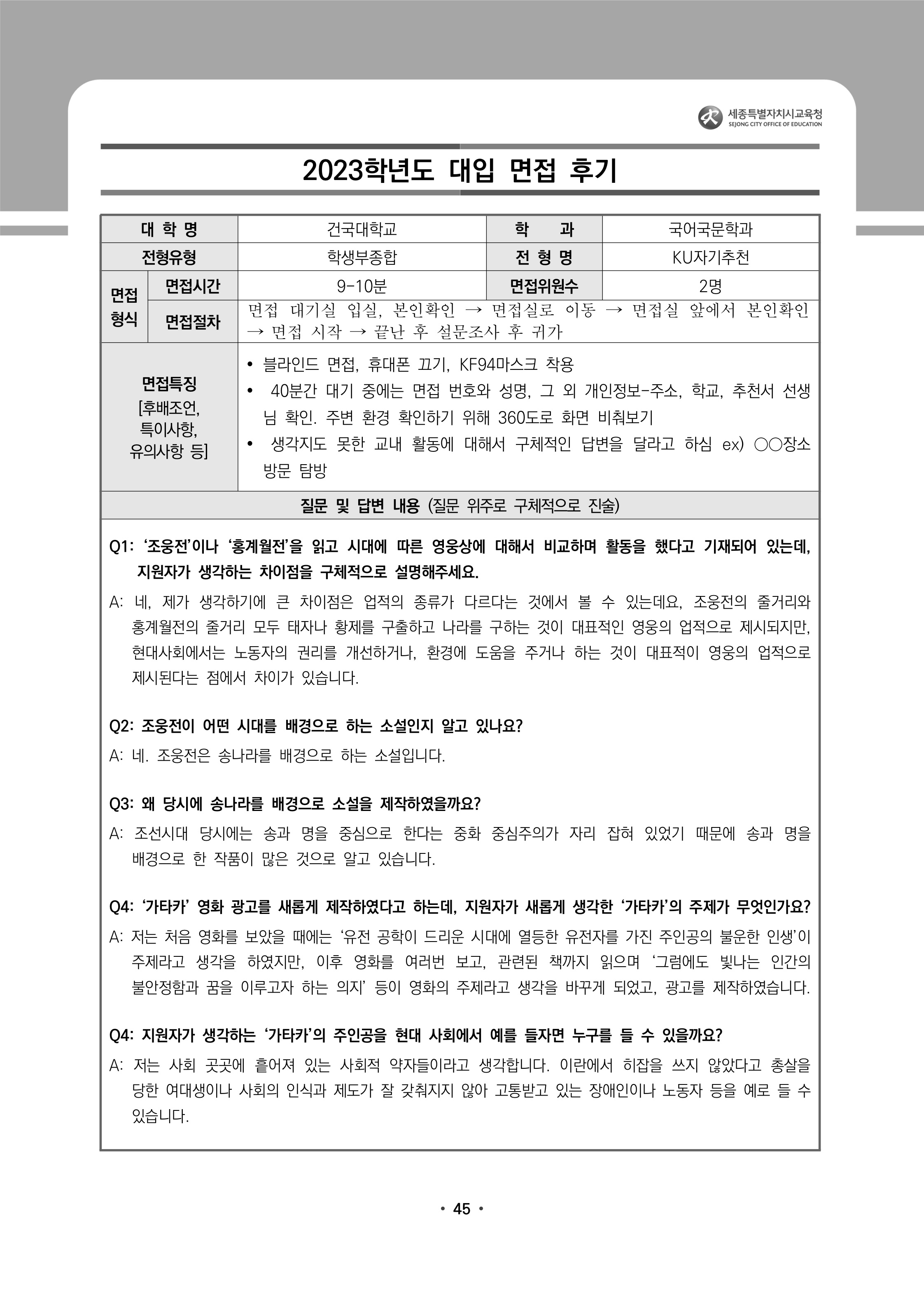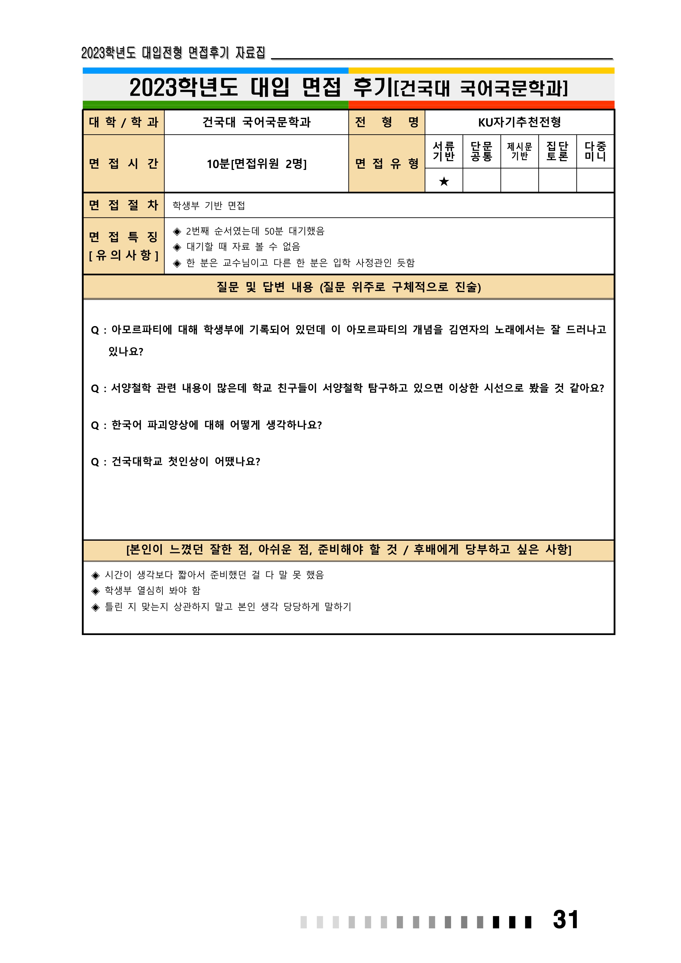 2023학년도 건국대학교 면접 후기9 - 국어국문학과 2023학년도 건국대학교 면접 후기10 - 국어국문학과