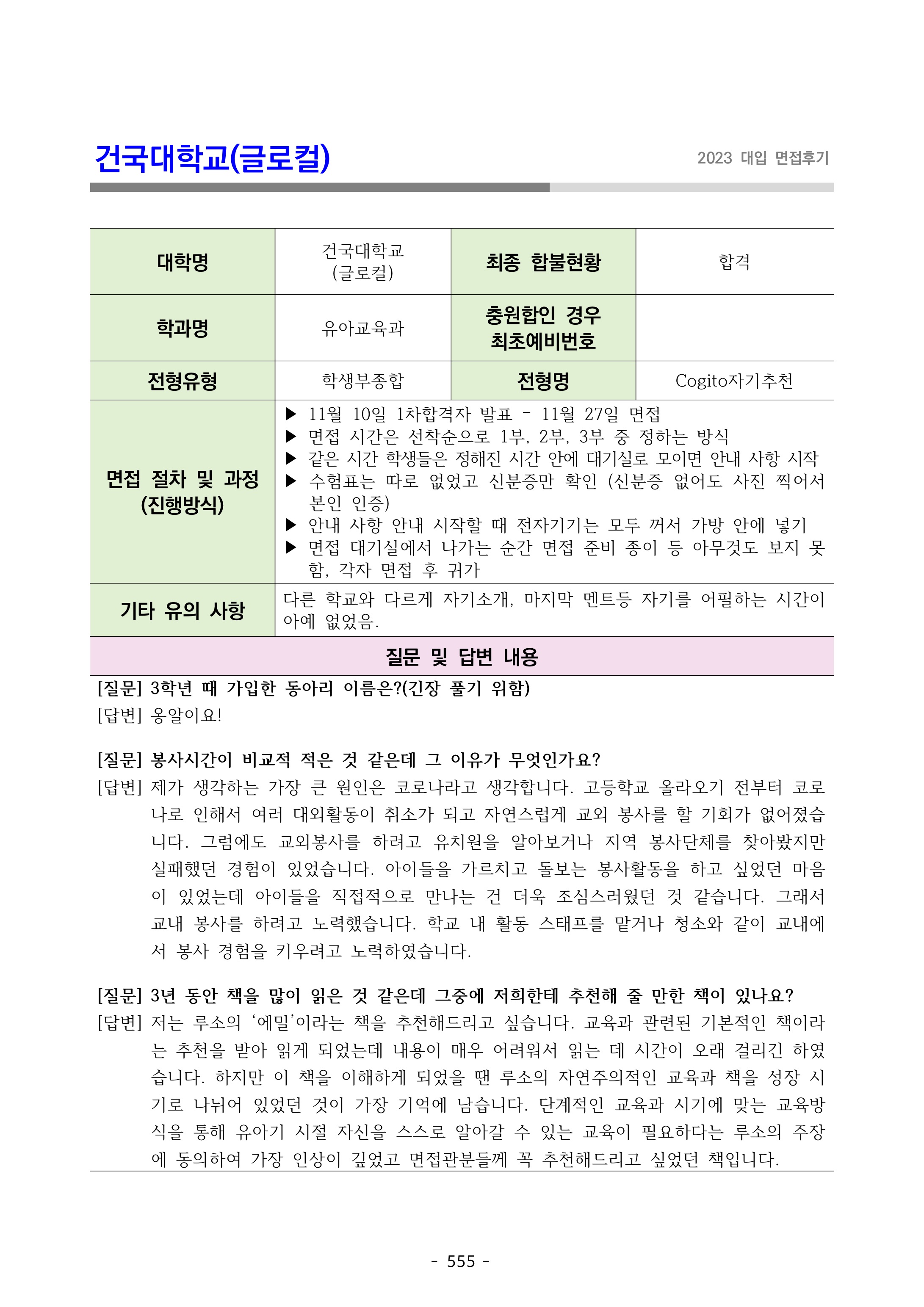 2023학년도 건국대학교 글로컬캠퍼스 면접 후기8 - 유아교육과