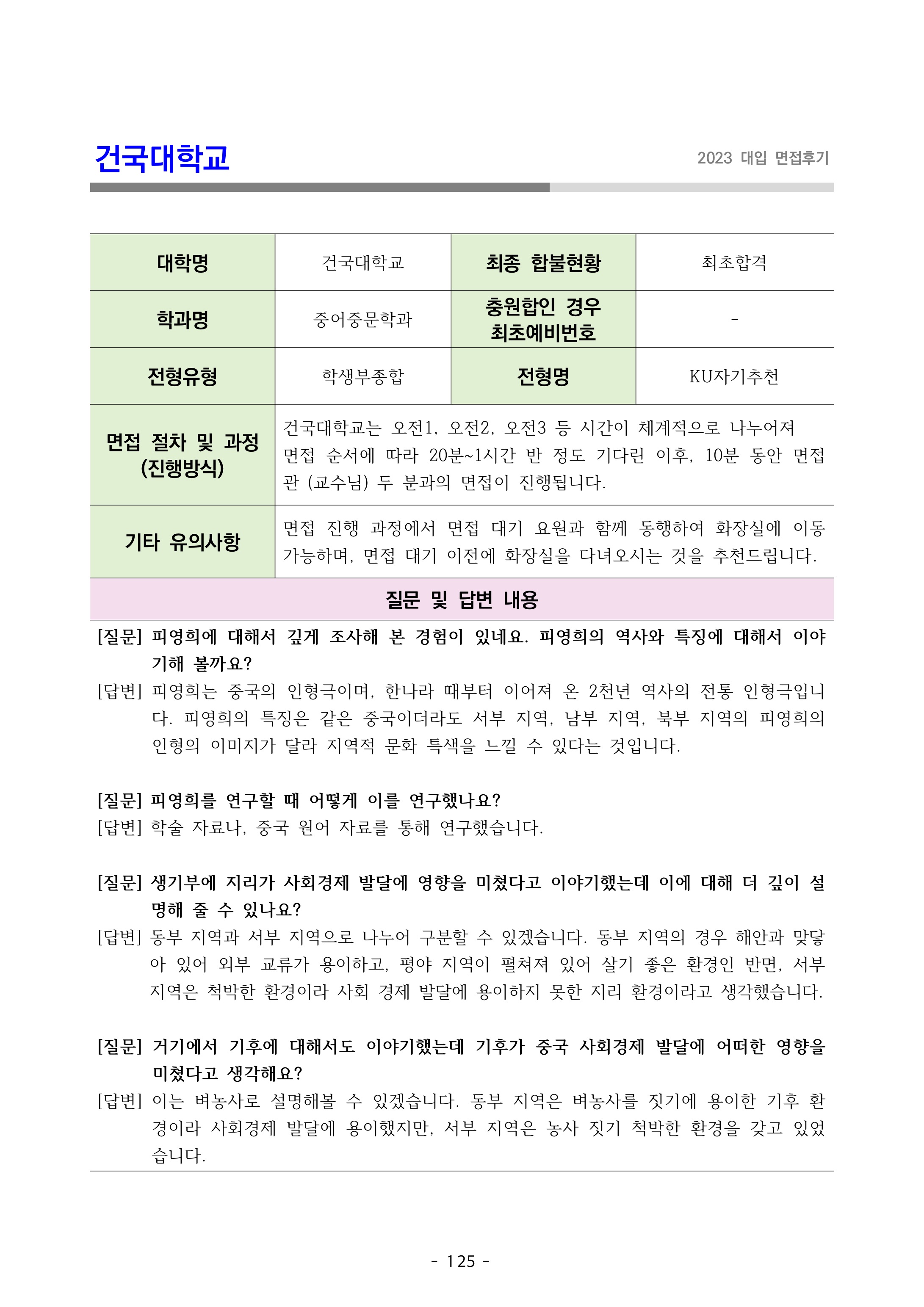 2023학년도 건국대학교 면접 후기27 - 중어중문학과