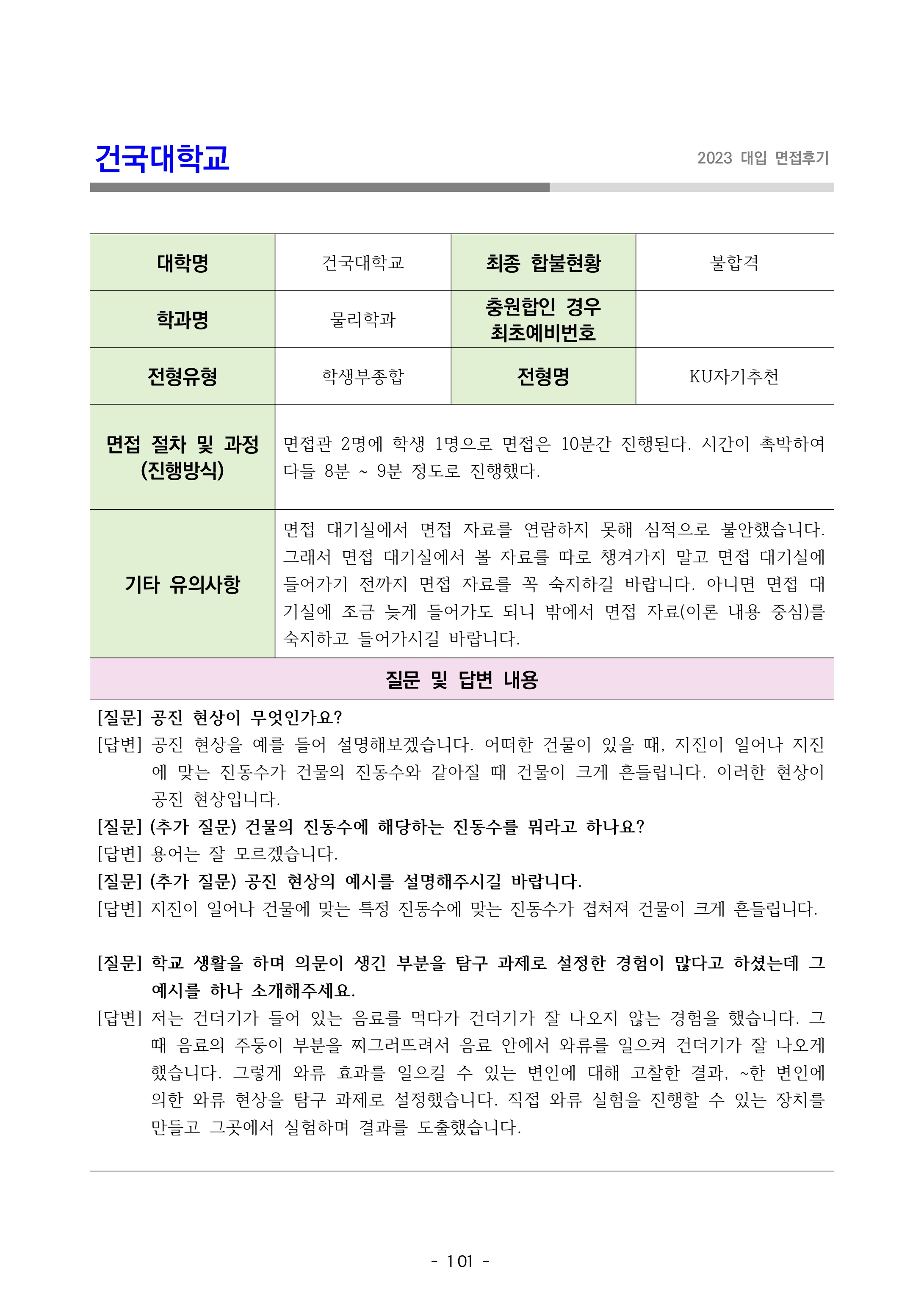 2023학년도 건국대학교 면접 후기14 - 물리학과 2023학년도 건국대학교 면접 후기15 - 사회환경공학부