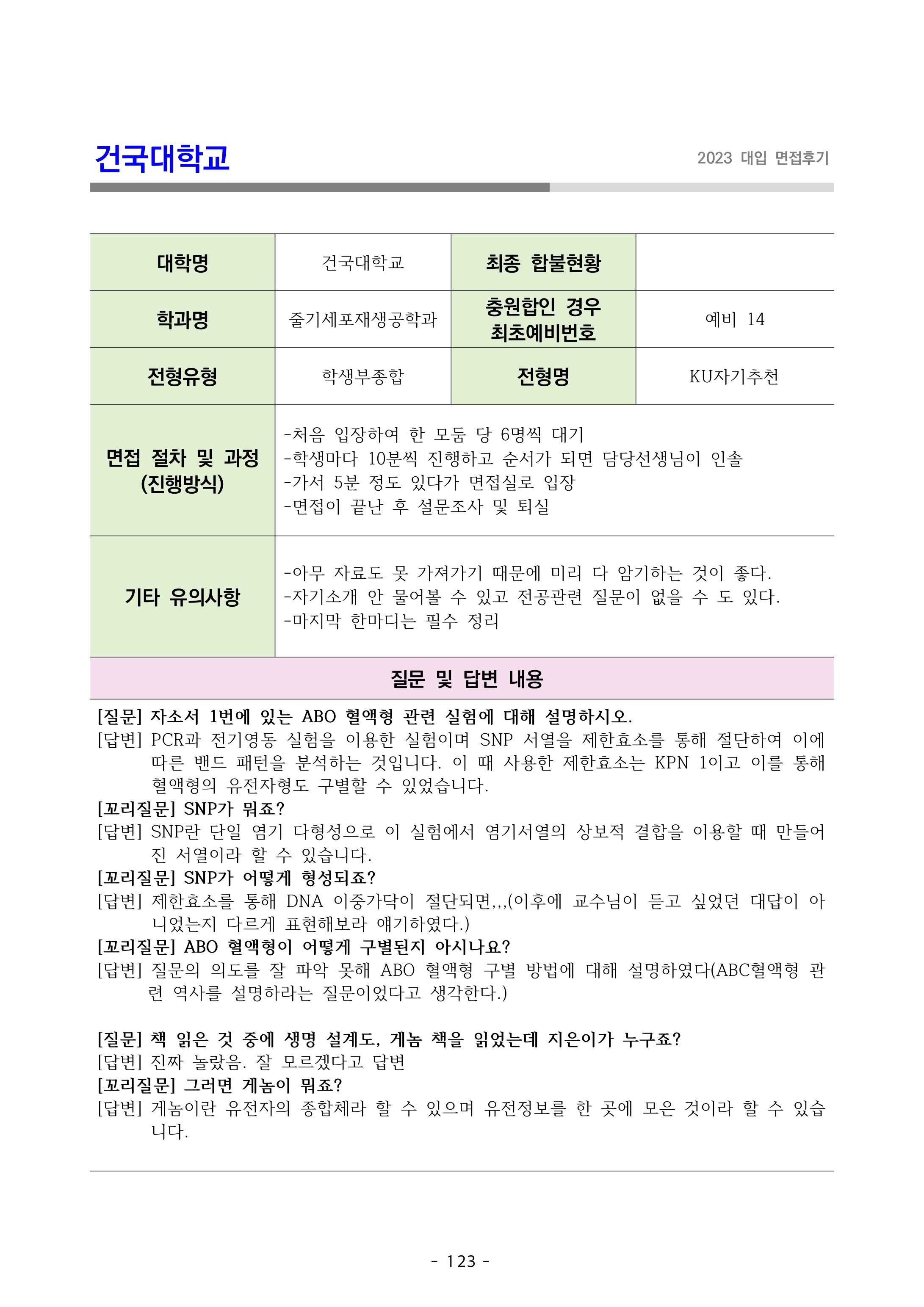 2023학년도 건국대학교 면접 후기22 - 의생명공학과