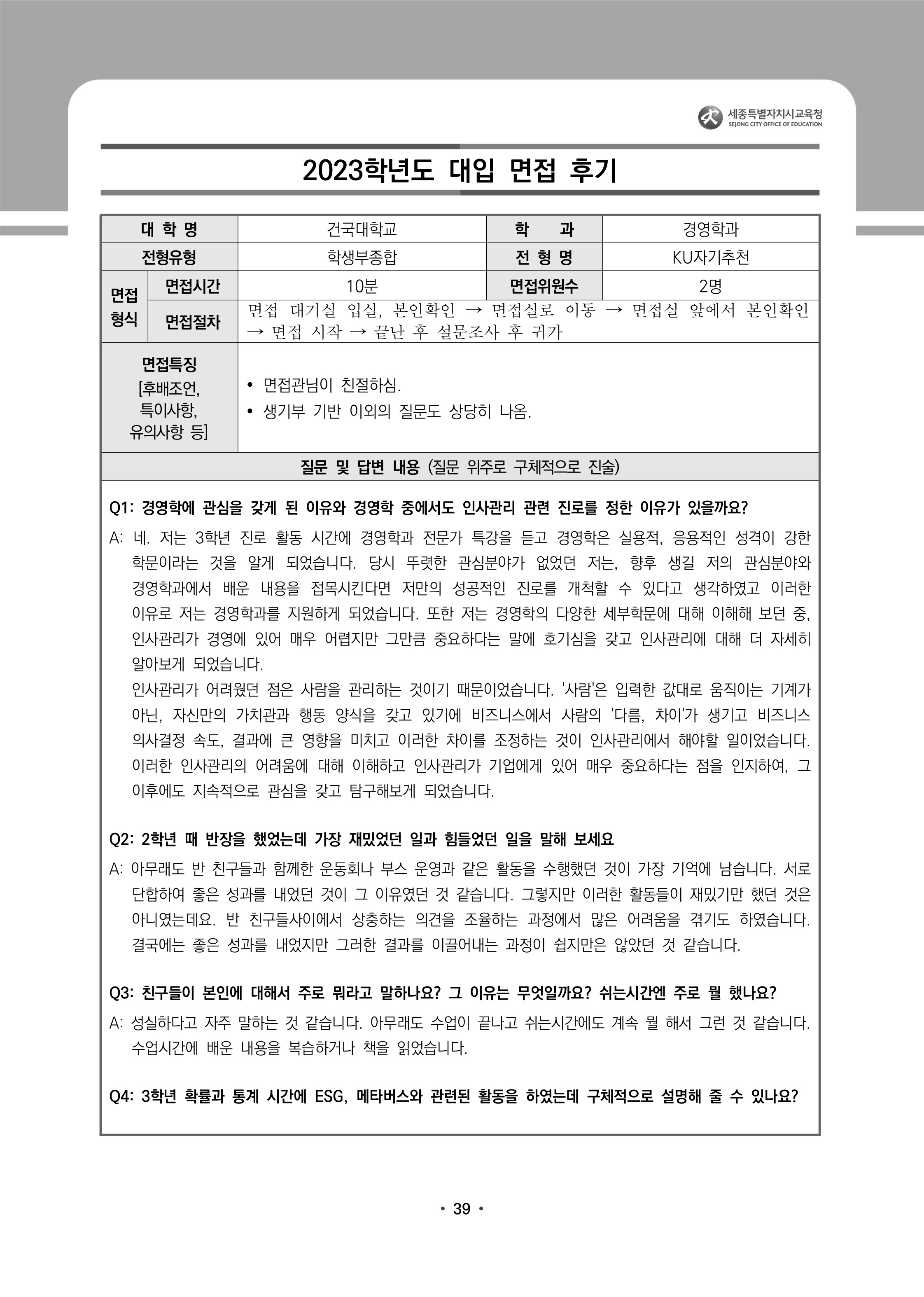 2023학년도 건국대학교 면접 후기5 - 경영학과