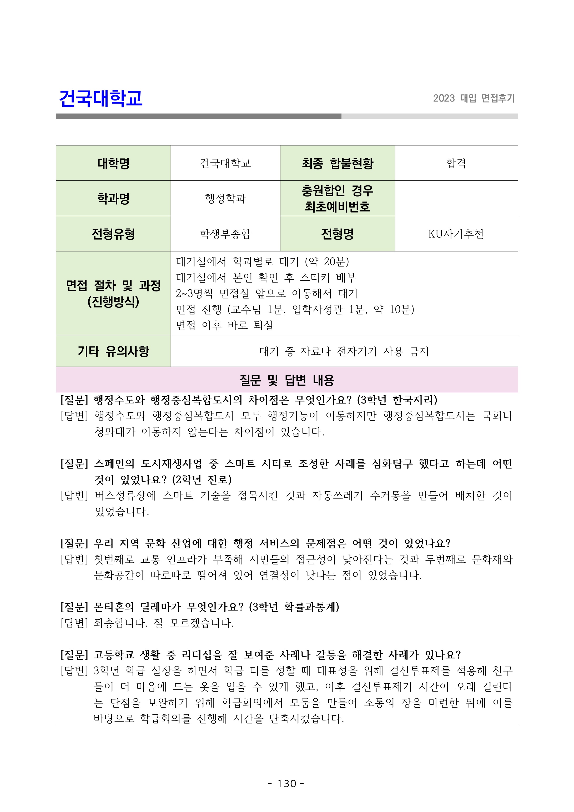 2023학년도 건국대학교 면접 후기31 - 행정학과