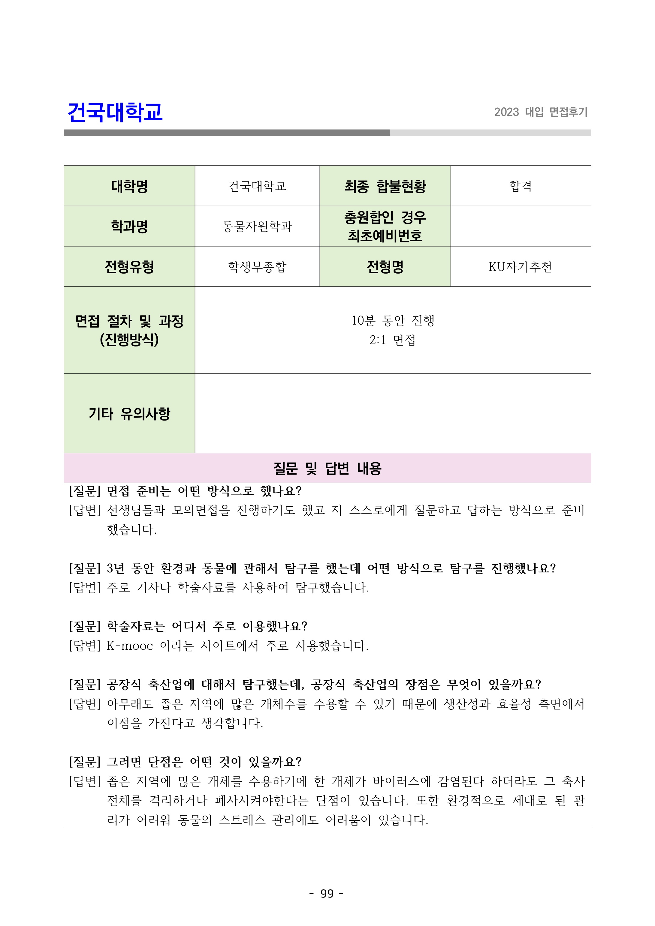 2023학년도 건국대학교 면접 후기13 - 동물자원과학과