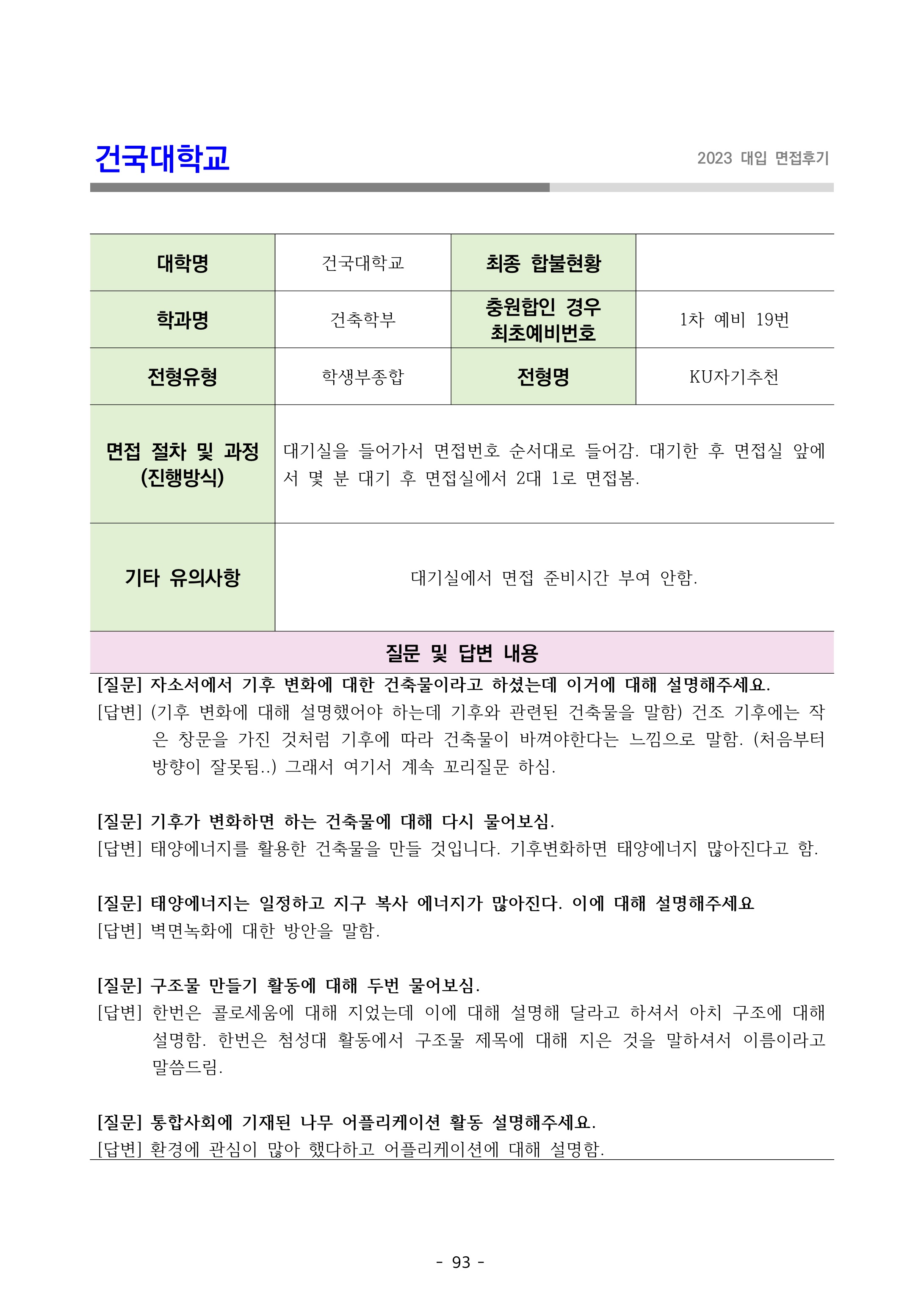 2023학년도 건국대학교 면접 후기15 - 사회환경공학부