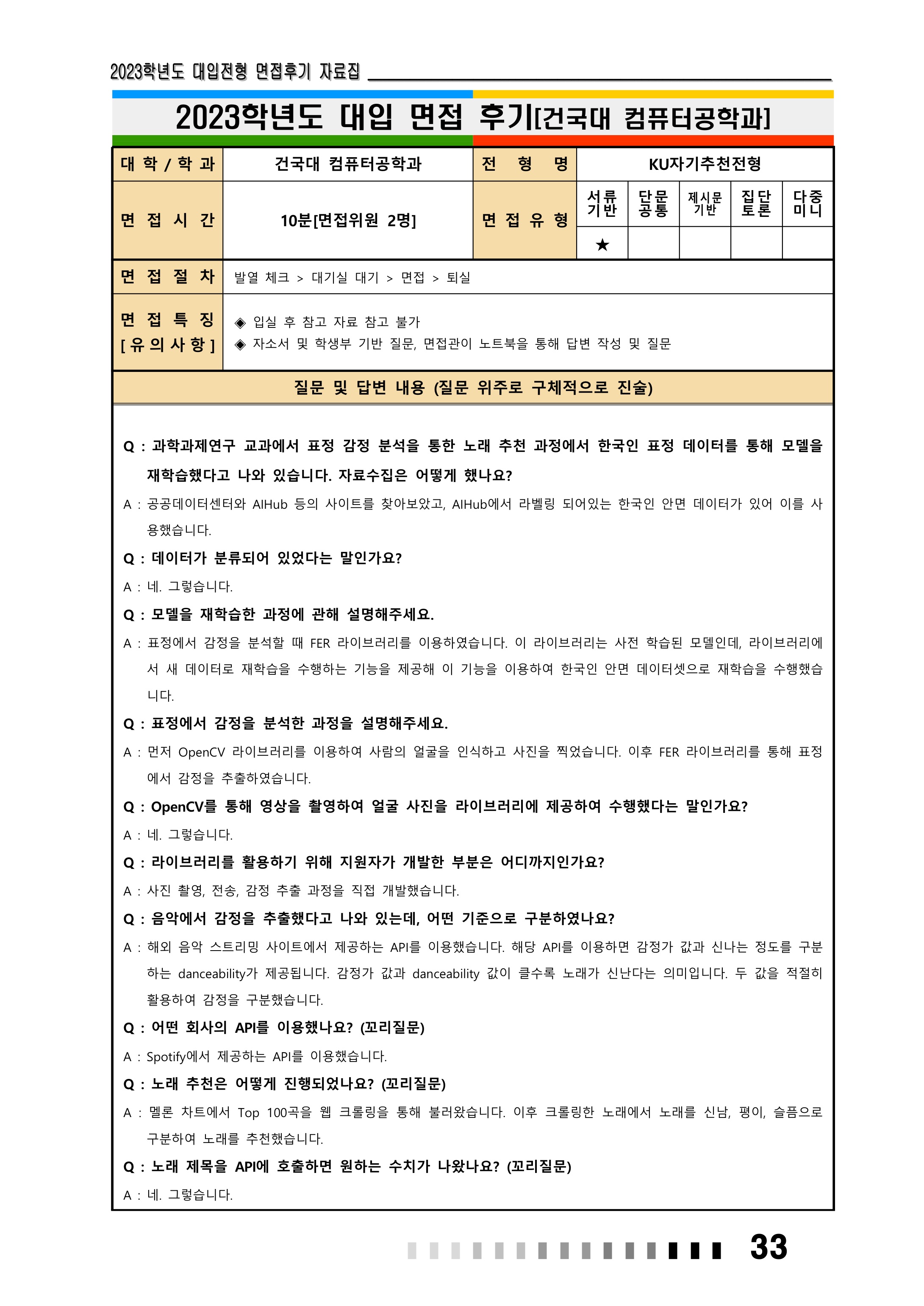 2023학년도 건국대학교 면접 후기30 - 컴퓨터공학부