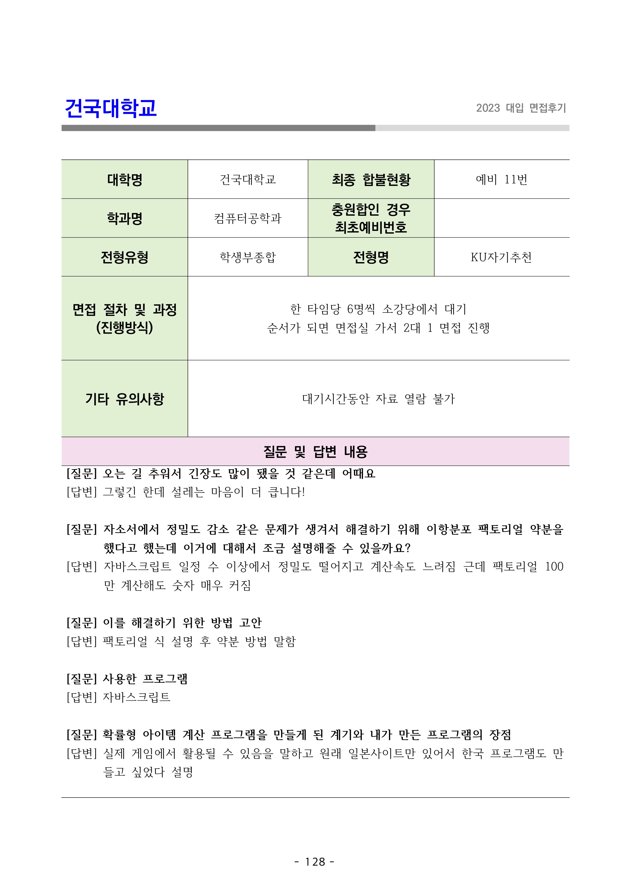 2023학년도 건국대학교 면접 후기28 - 컴퓨터공학부