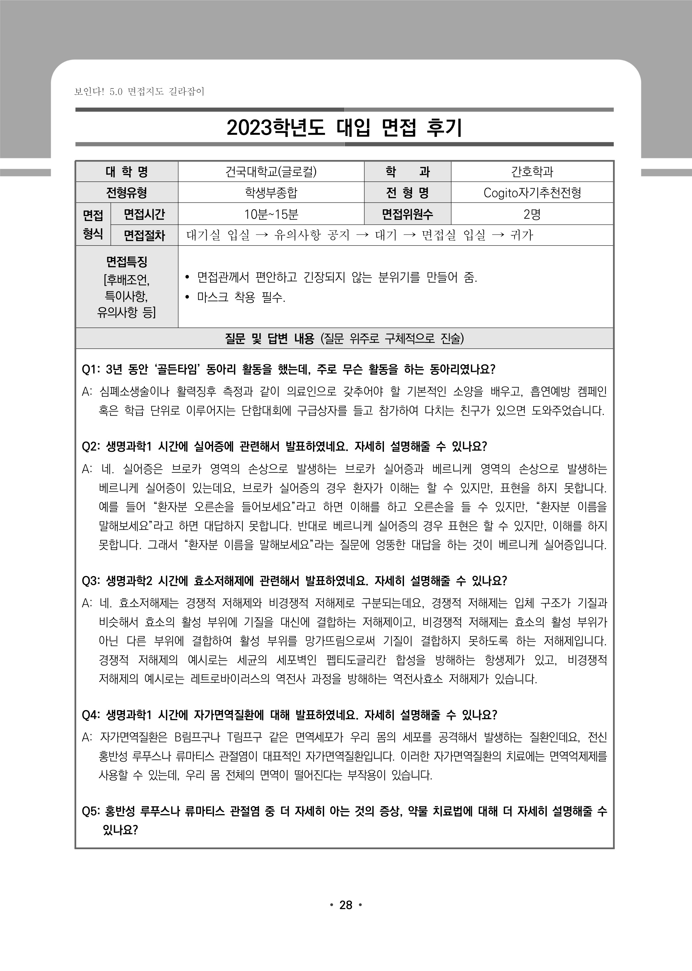 2023학년도 건국대학교 글로컬캠퍼스 면접 후기9 - 의예과