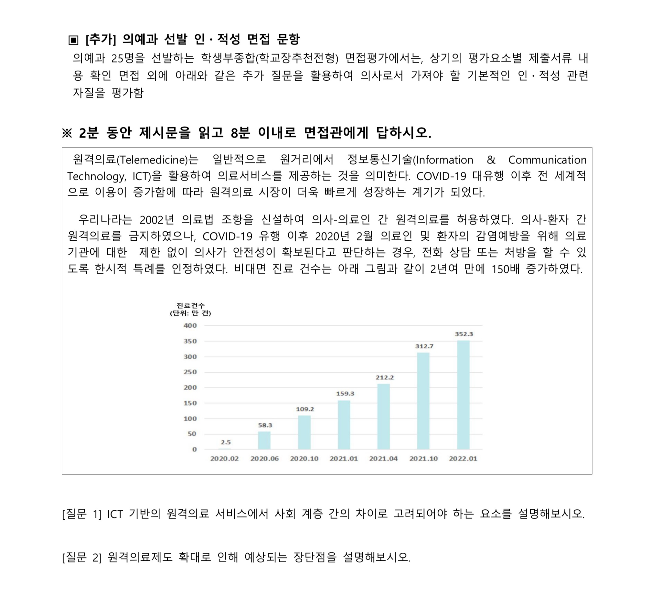 2023학년도 가톨릭대학교 의예과 선발 인적성 면접 문항 가톨릭대학교 국제학부