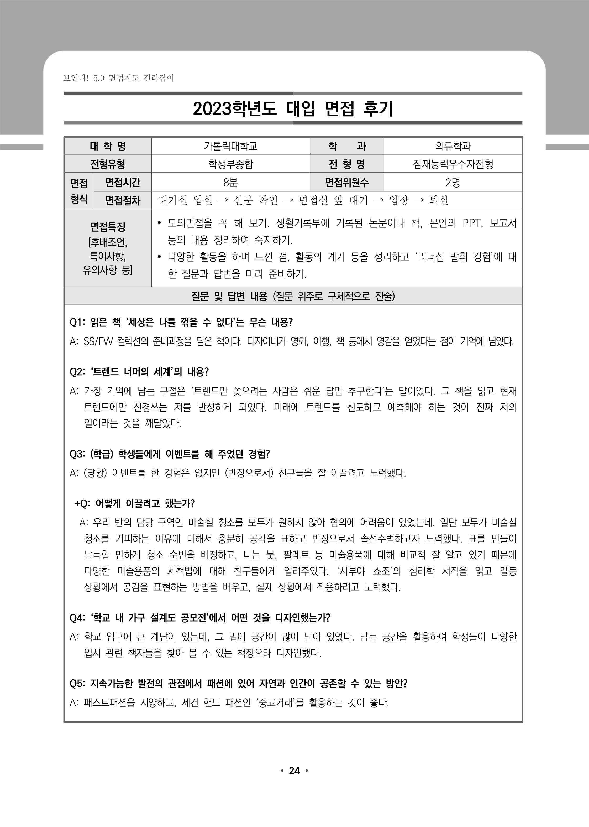 2023학년도 가톨릭대학교 면접 후기3 - 의류학과