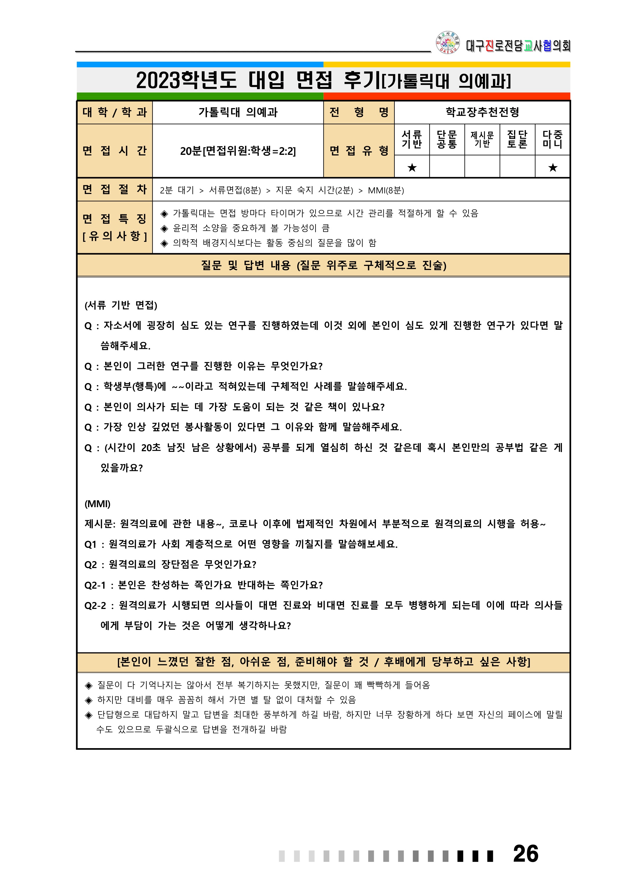 2023학년도 가톨릭대학교 면접 후기3 - 의류학과 2023학년도 가톨릭대학교 면접 후기4 - 의예과
